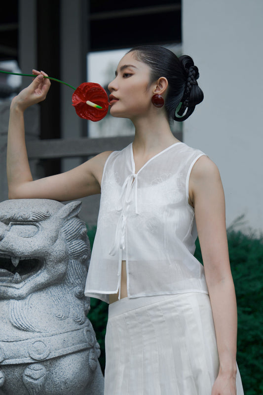 Sheer Blossom Embroidery Vest (Ivory)