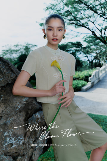 Pastel Gleam Floral Overlap Cheongsam Top (Beige Yellow)