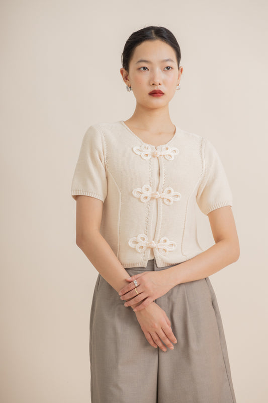 Chinese Knot Down Knit Top (Beige)