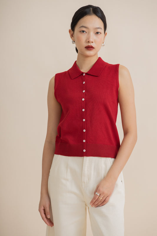 Sleeveless Collar Knit Top (Red)