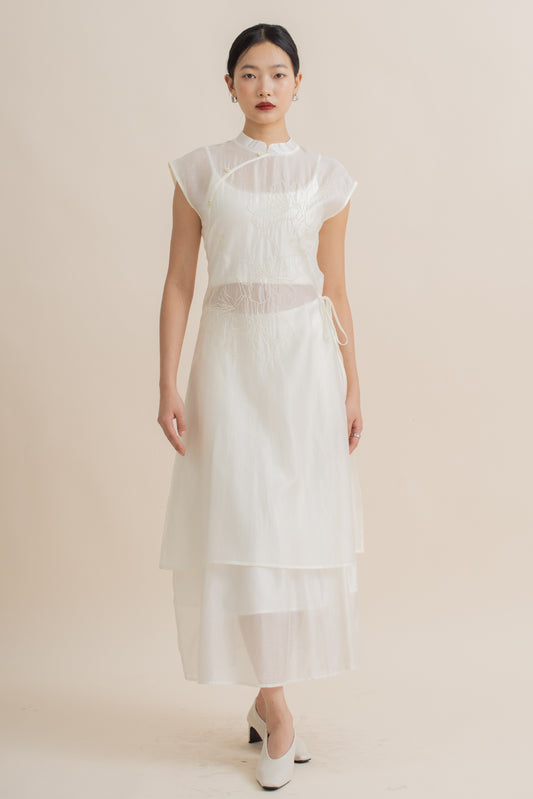 Sheer Blossom Embroidery Cheongsam Dress (Ivory)