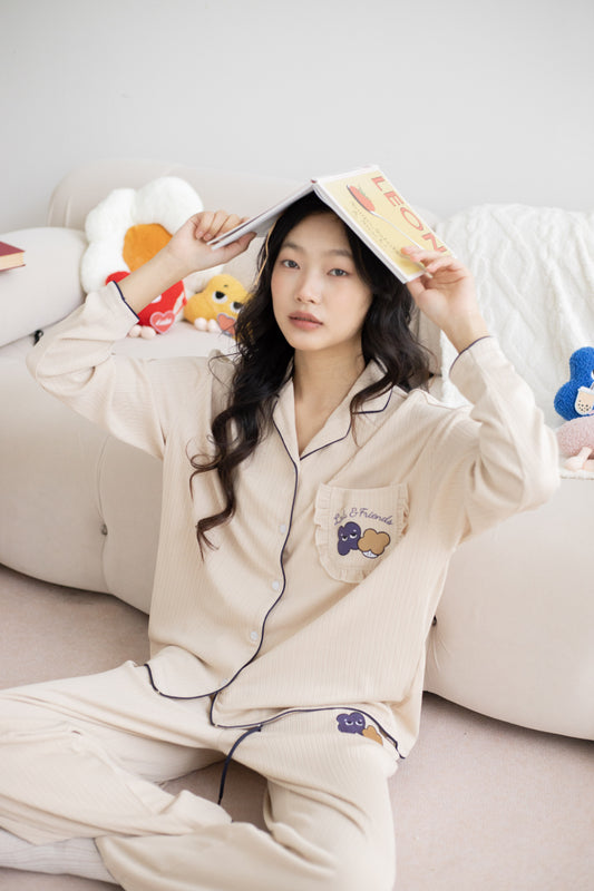 LULU Drapey Long Sleeve Pyjamas Set (Beige Brown)