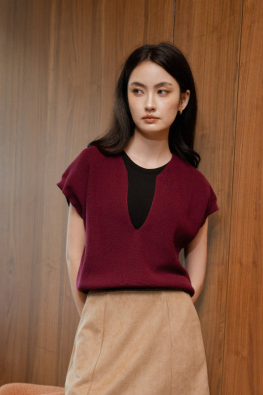 Houndstooth V-Neck Sleeveless Top (Slategrey)
