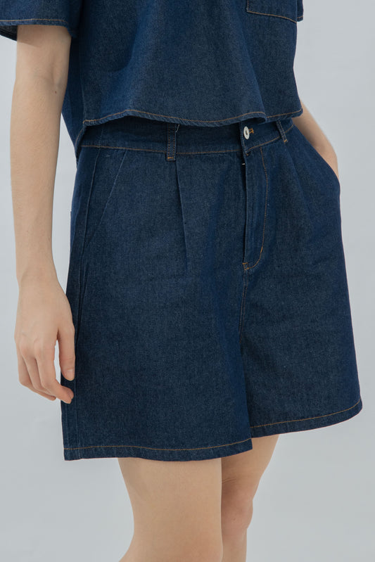 The Kayla High Waist Denim A-Line Shorts, made from 100% cotton, offer both comfort and...
