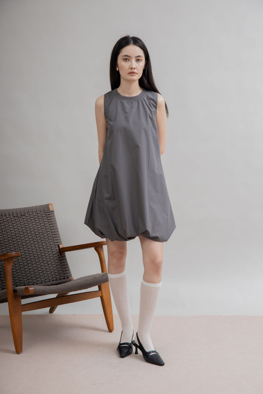 Puffy Sleeveless Mini Dress (Grey)