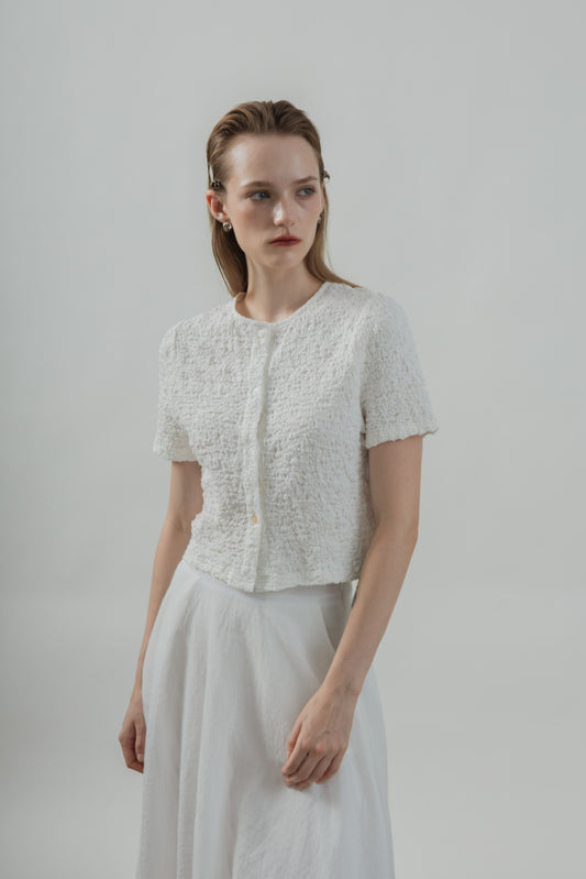 Two Way Bow Tie Short Sleeve Blouse (White)