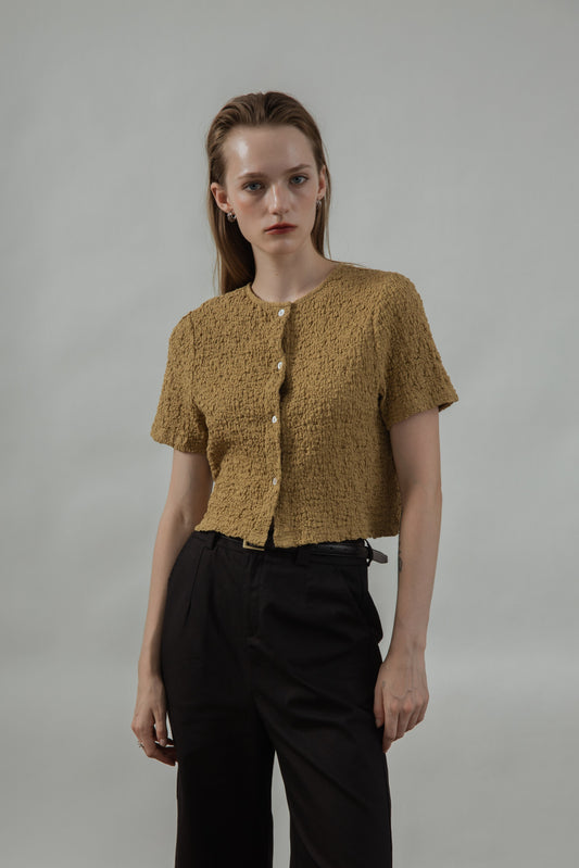 Two Way Wrinkle Short Sleeve Top (Golden Palm)