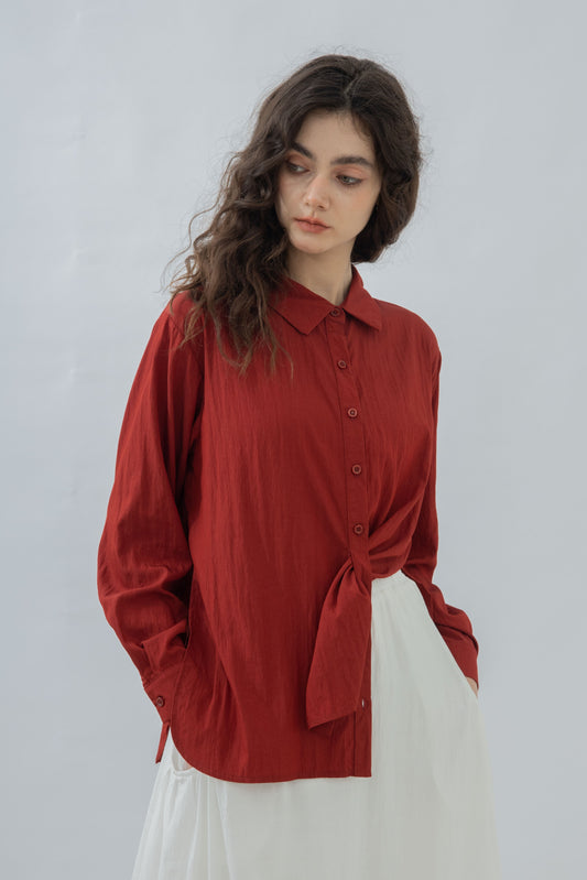 Two Way Pleated Balloon Sleeve Blouse, made of 30% cotton and 70% tencel, features a...