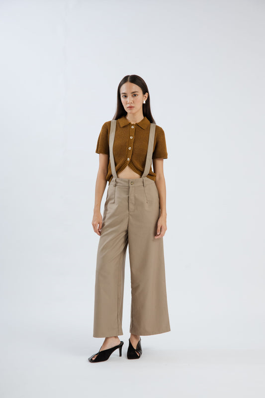 Arden Wide Leg Tailored Dungaree (Khaki)