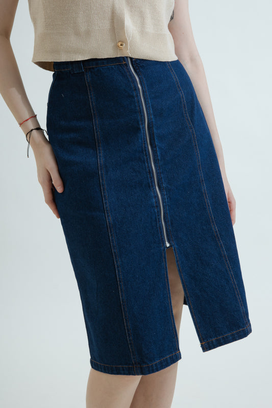 Multi-Wear Zipper Denim Skirt, crafted from 100% Cotton, combines a straight-cut silhouette with a center-front...