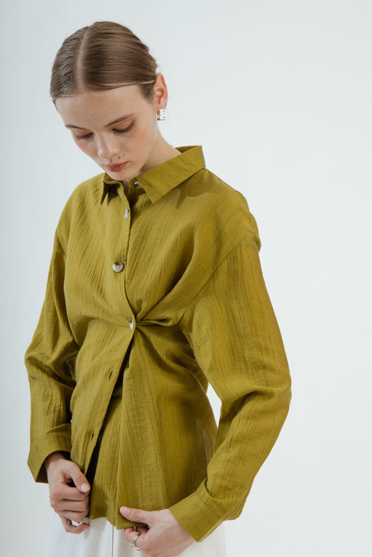 Multi-Wear Amber Button Texture Collared Shirt (Olive)