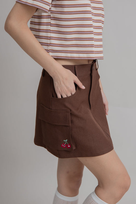 LULU Cherry Side Pockets Short Skirt (Brown)