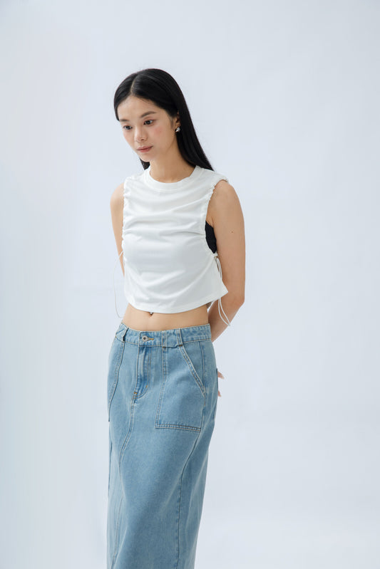 Effortless with a twist β this top features a statement drawstring down the front, allowing...