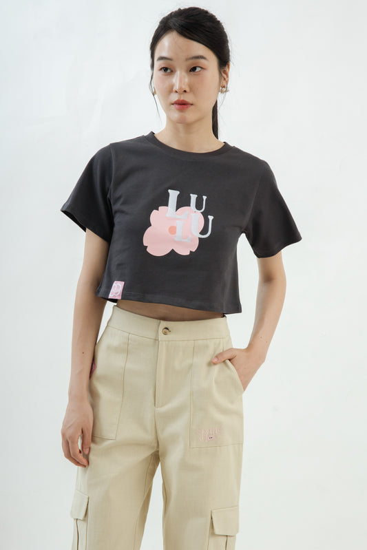 LULU In Pink Embroidery Crop Tee (Grey)