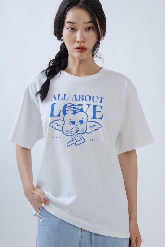 LULU All About Love Flock Print Oversize Tee (White)