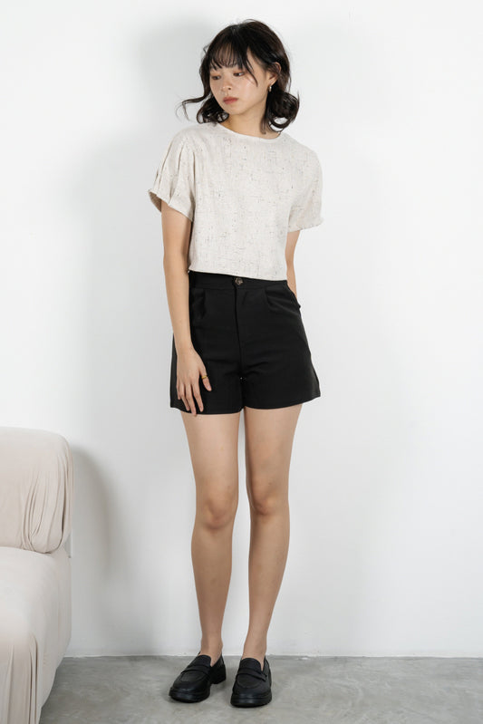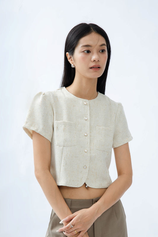 Tweed Double Pocket Short Sleeve Top (Beige Mix)