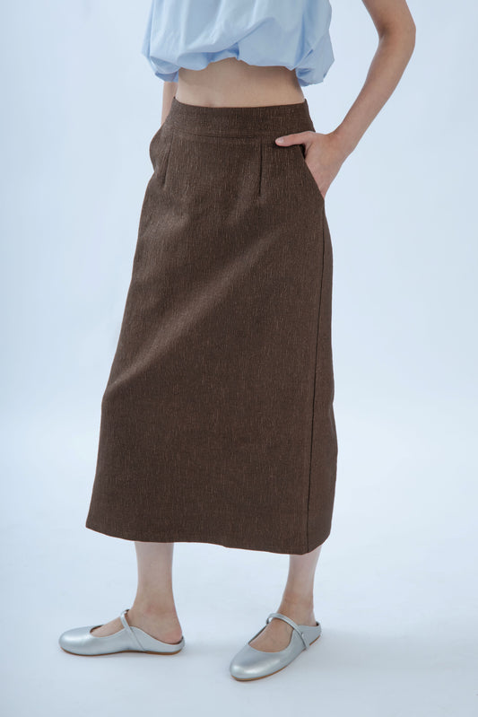 Earthy tones meet effortless movement. This textured long skirt is crafted from 100% polyester, offering...