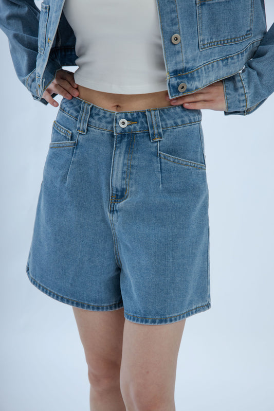 Mid-Length Side Pockets Denim Shorts (Denim)