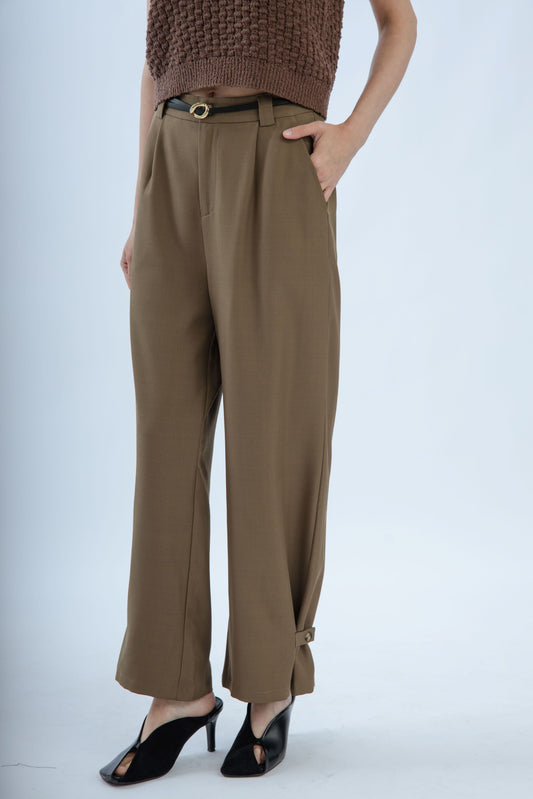 Classic High Waist Straight Cut Trousers (Khaki Grey)