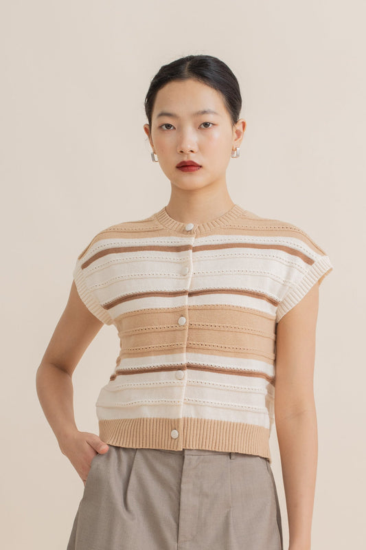 Stripes Detailing Knit Vest (Khaki Stripes)
