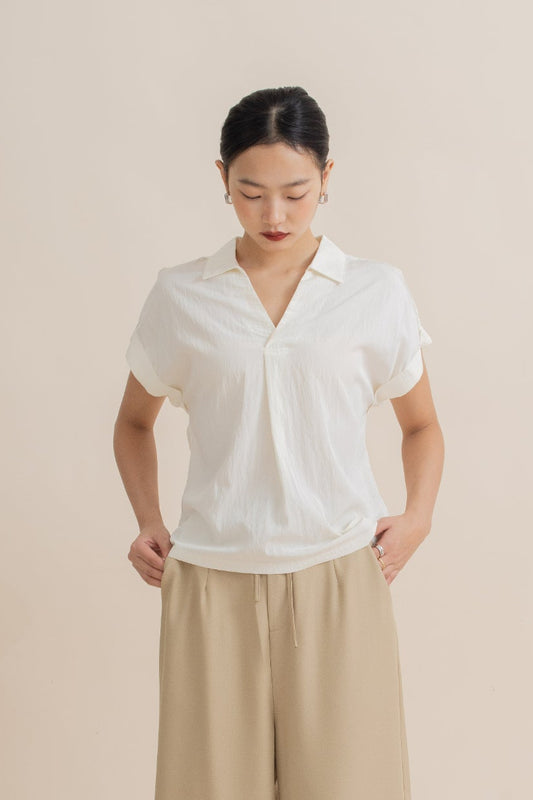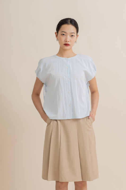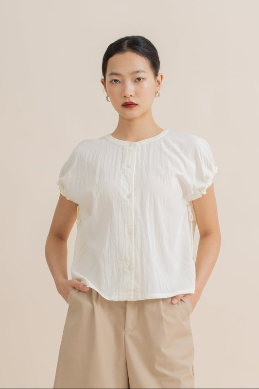 Ribbon Shirred Short Sleeve Top (Ivory)