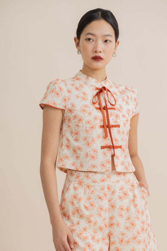 Designed to pair perfectly with the matching cheongsam top, these floral shorts blend softness, tradition,...