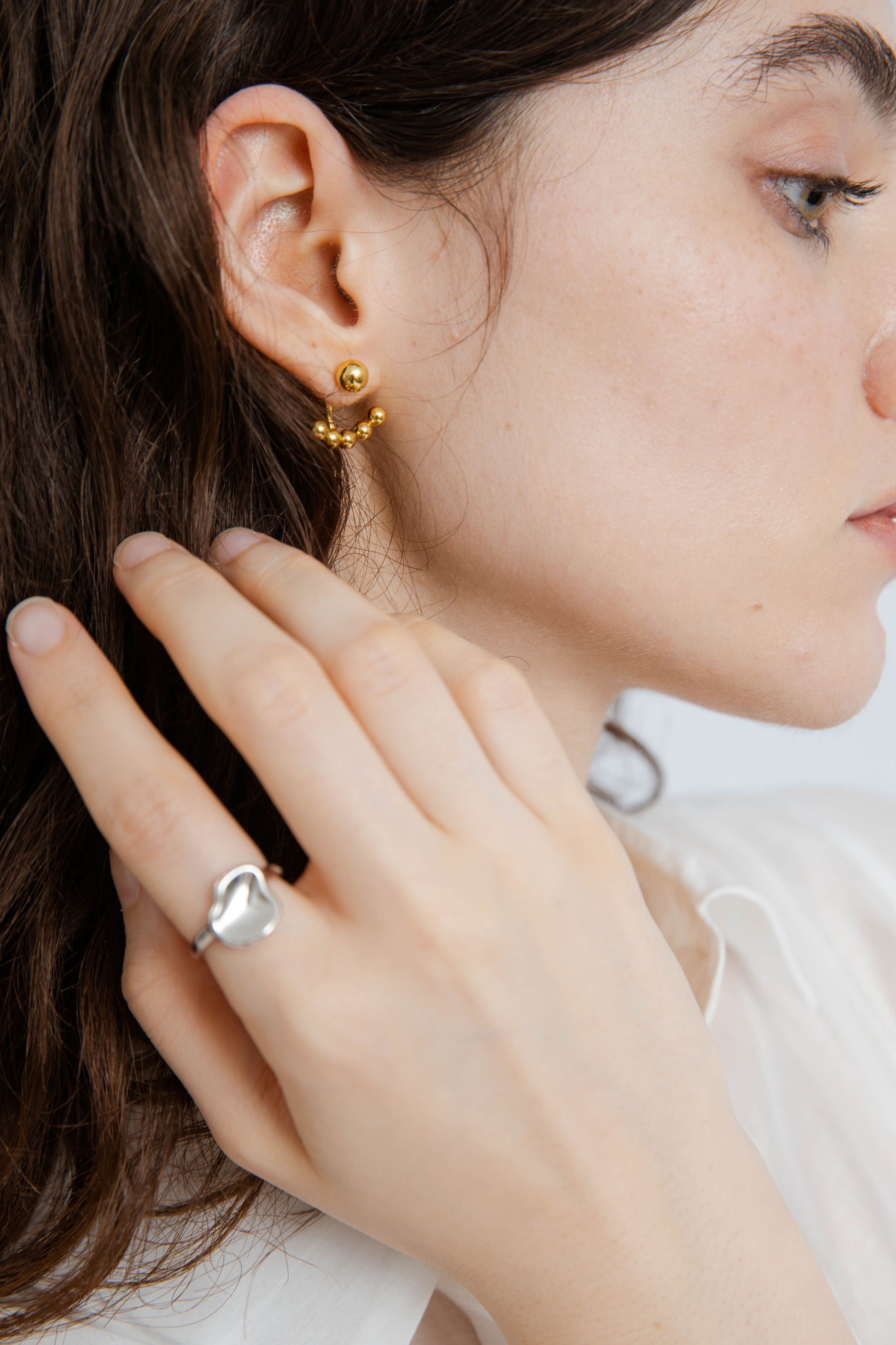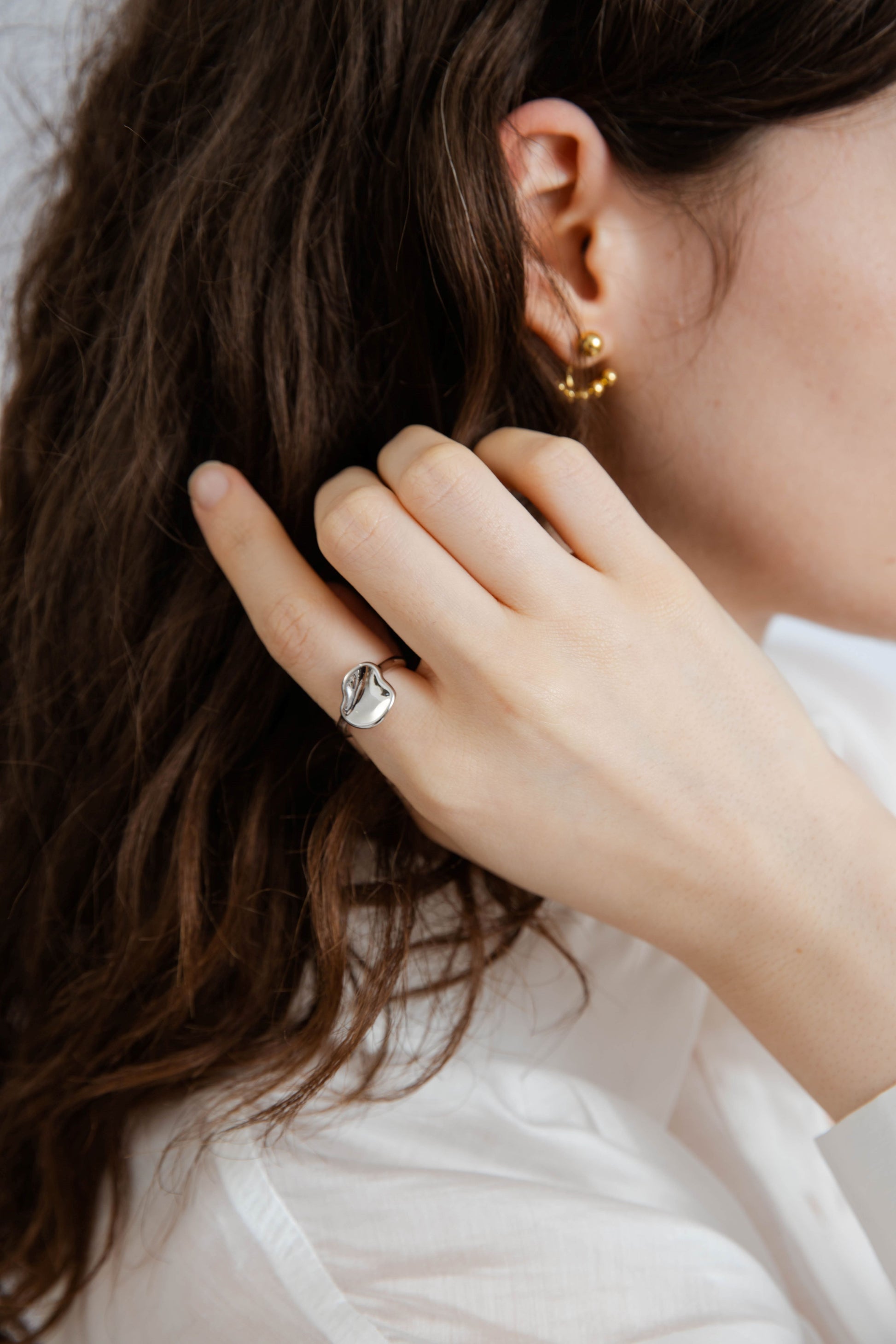 Unexpected and artful, this statement ring redefines minimal with a twist. Featuring a sleek band adorned with an abstract, oddly shaped piece at the front, it blends modern edge with wearable design. The organic form catches the light and the eye—making it a subtle yet striking accent whether worn solo or stacked. Perfect for those who love their accessories with a hint of the unconventional.