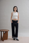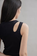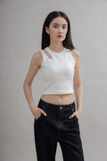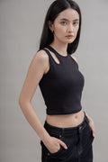A modern twist on the classic tank, this sleeveless top features a bold cut-out detail at the neckline for an edgy yet minimal look. Crafted from a soft blend of 96% Cotton and 4% Spandex, it offers breathable comfort with just the right amount of stretch to hug your figure.