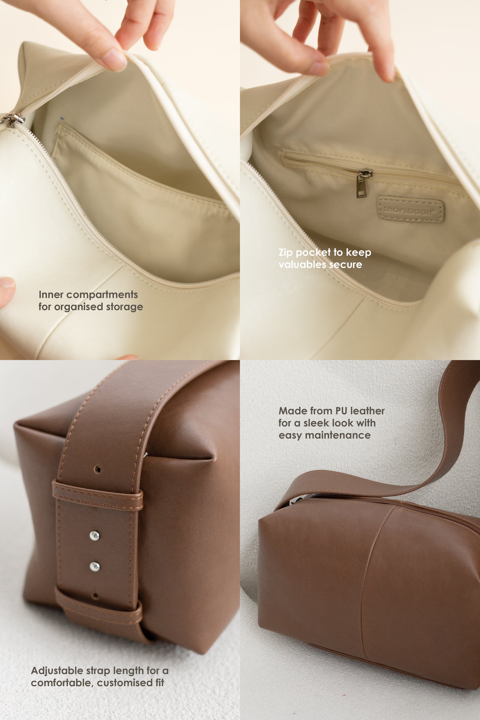 Upgrade your everyday essentials with this shoulder bag in versatile Beige or Brown. Crafted with a sleek PU leather exterior and a smooth 100% polyester lining, it combines durability with a polished look.