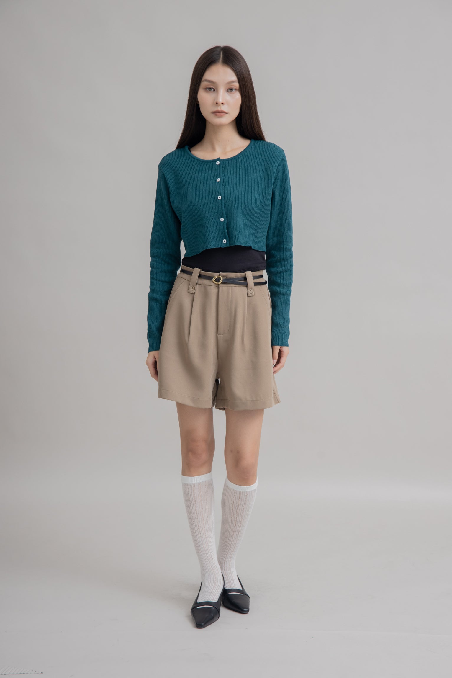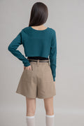 Playful yet polished, these pleated A-line shorts are designed with a flattering flare that moves with ease. The button loop detail at the waist adds a chic touch while ensuring a secure fit. Made from a soft and stretchy blend of 92% Polyester and 8% Spandex, they offer comfort with just the right amount of structure—perfect for dressing up or down.