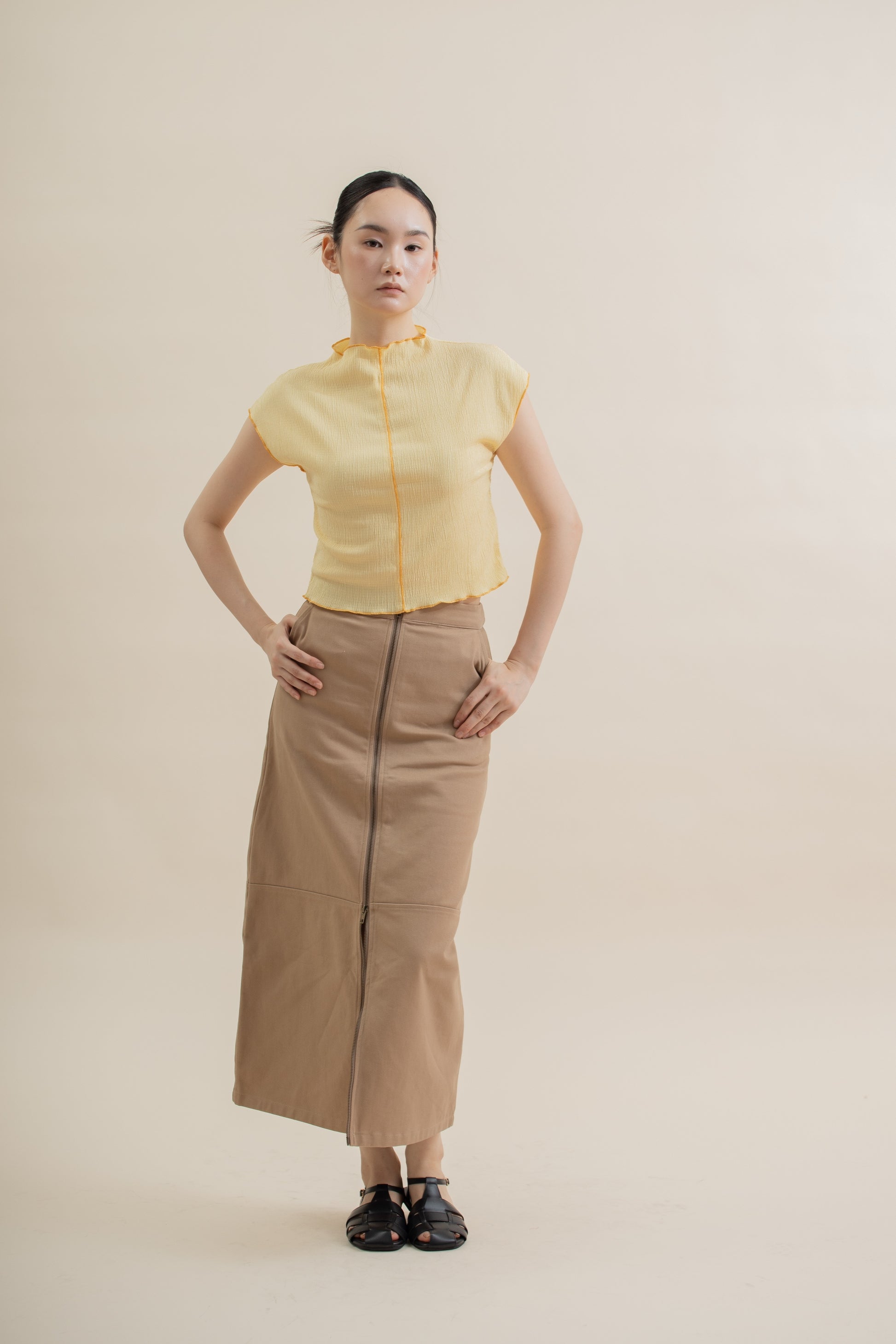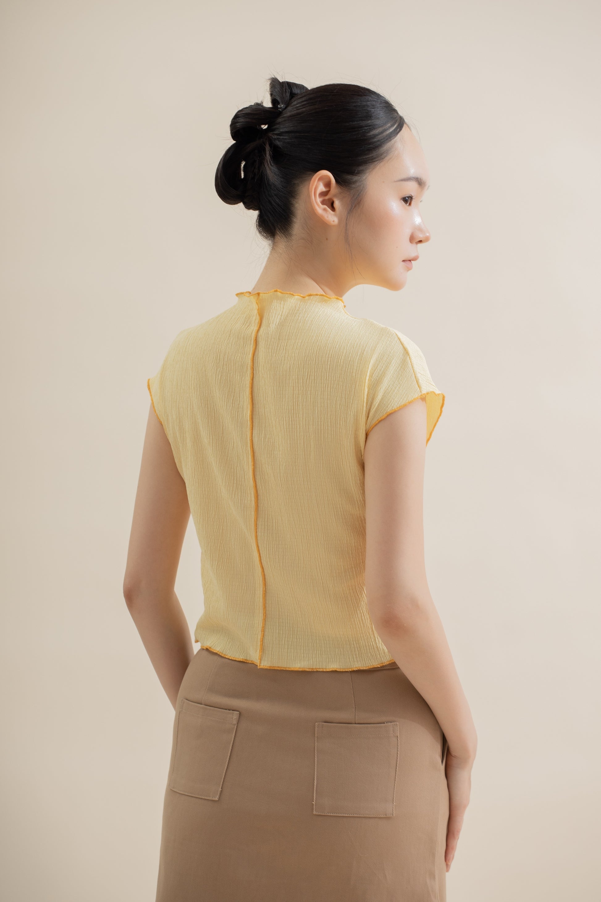 Contour Seam Cap-Sleeve Top (Yellow)