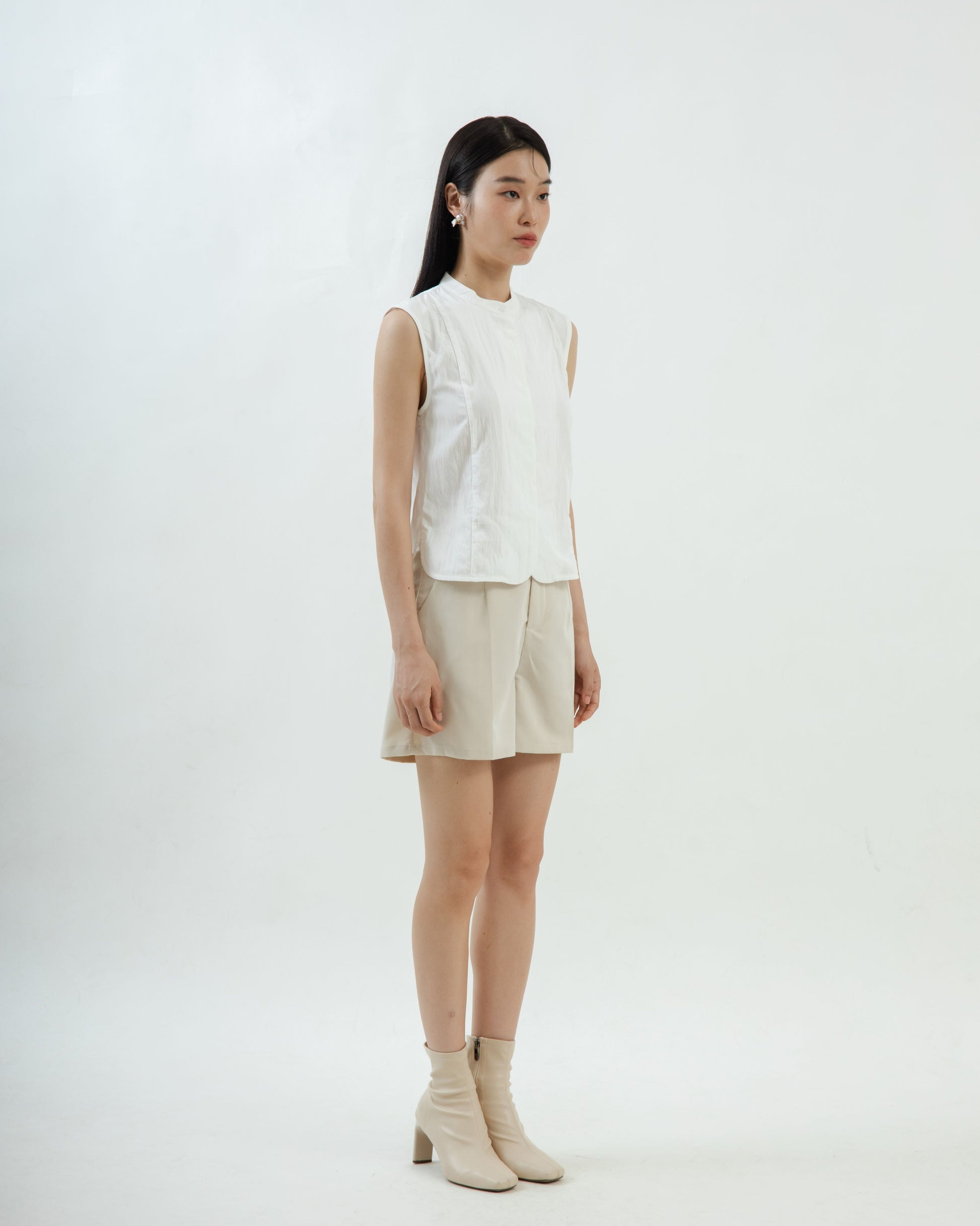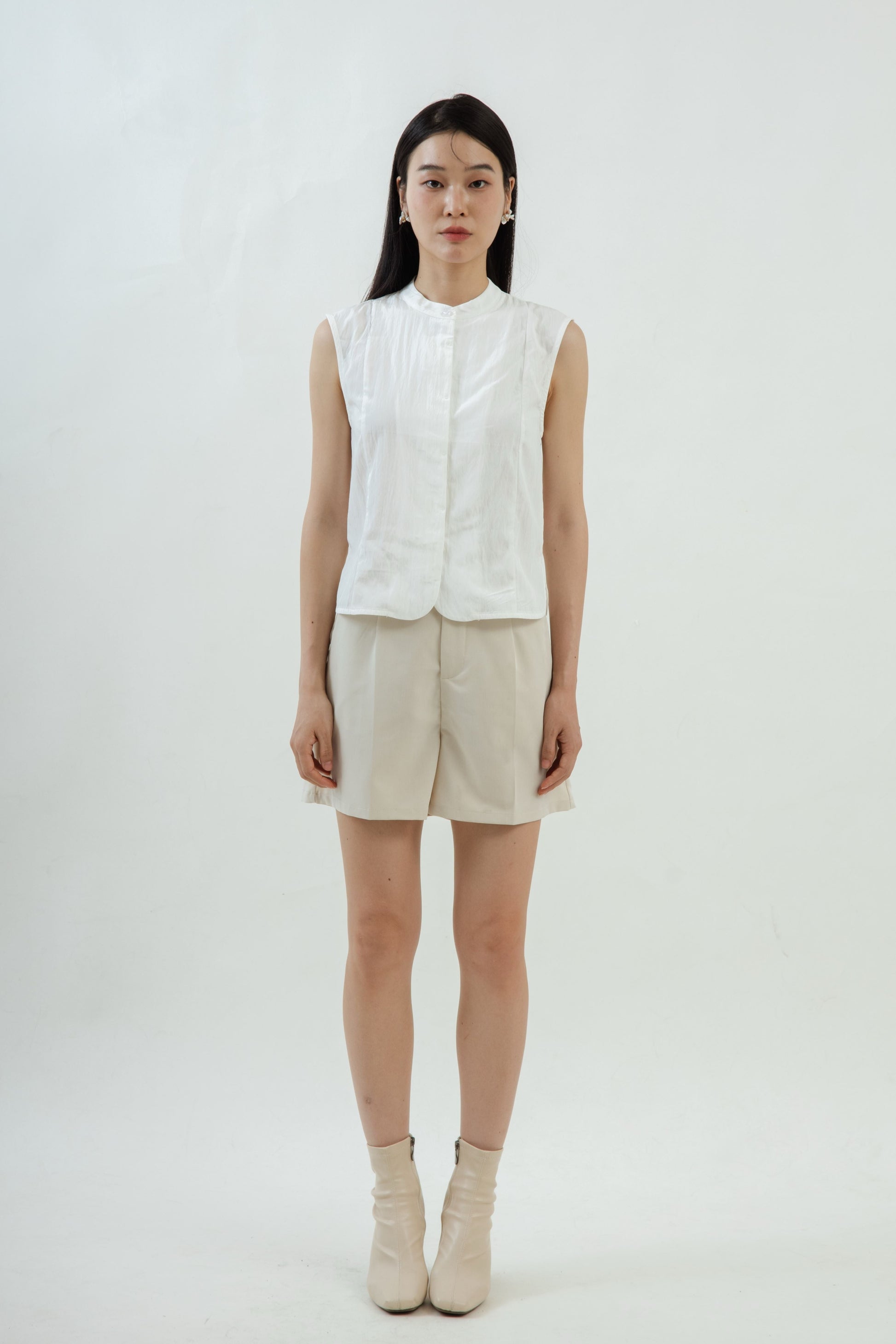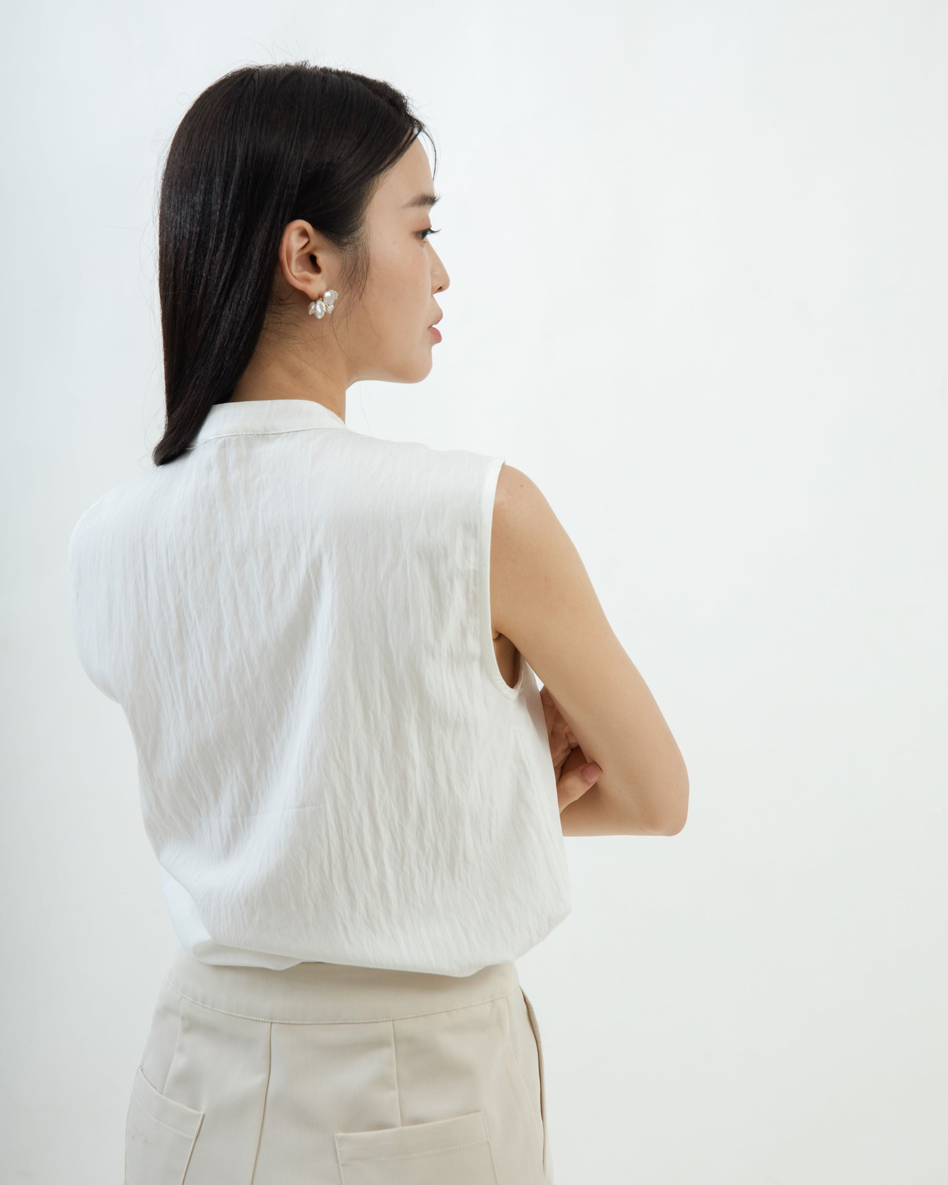 The Cutline Sleeveless Blouse offers a sleek and refined look with a modern touch. Made from 70% viscose and 30% polyamide, this high-neck sleeveless blouse features subtle cutline details and a slight waist-cinching design that flatters the silhouette. Its minimalist yet sophisticated style makes it a versatile choice for everyday wear, effortlessly blending elegance and comfort.