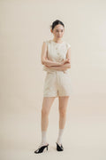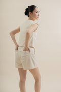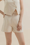 Dual Button Wide Leg Shorts (Beige)