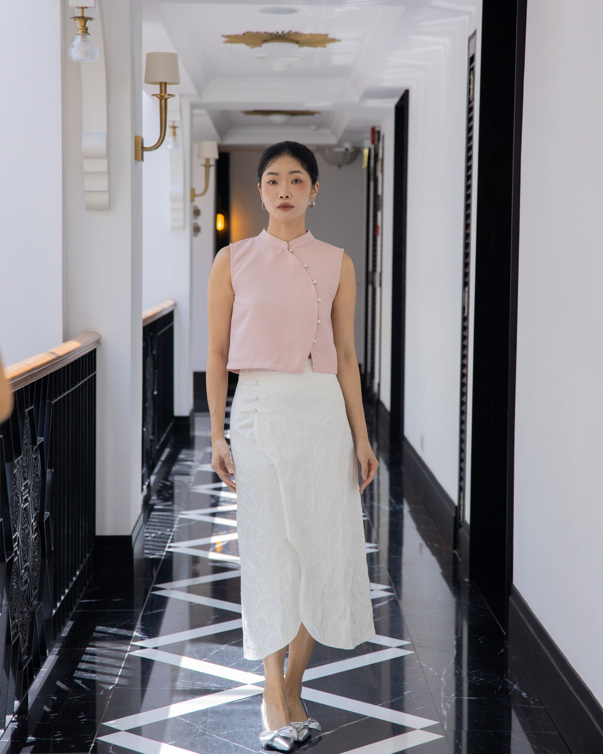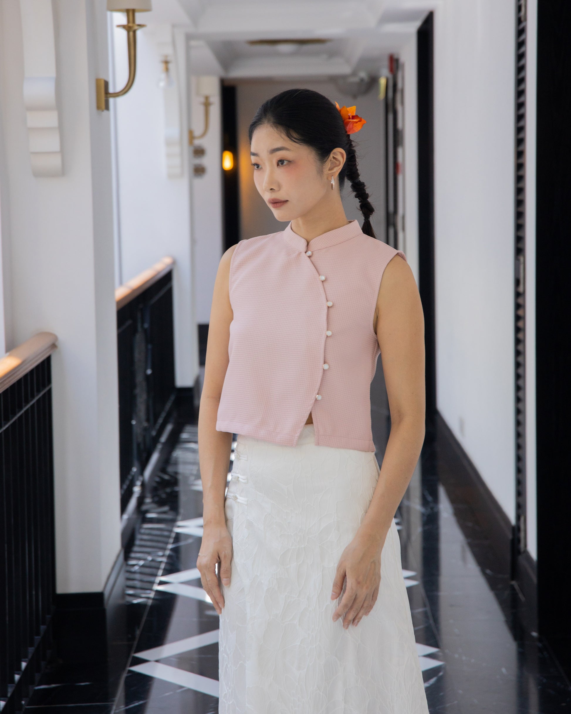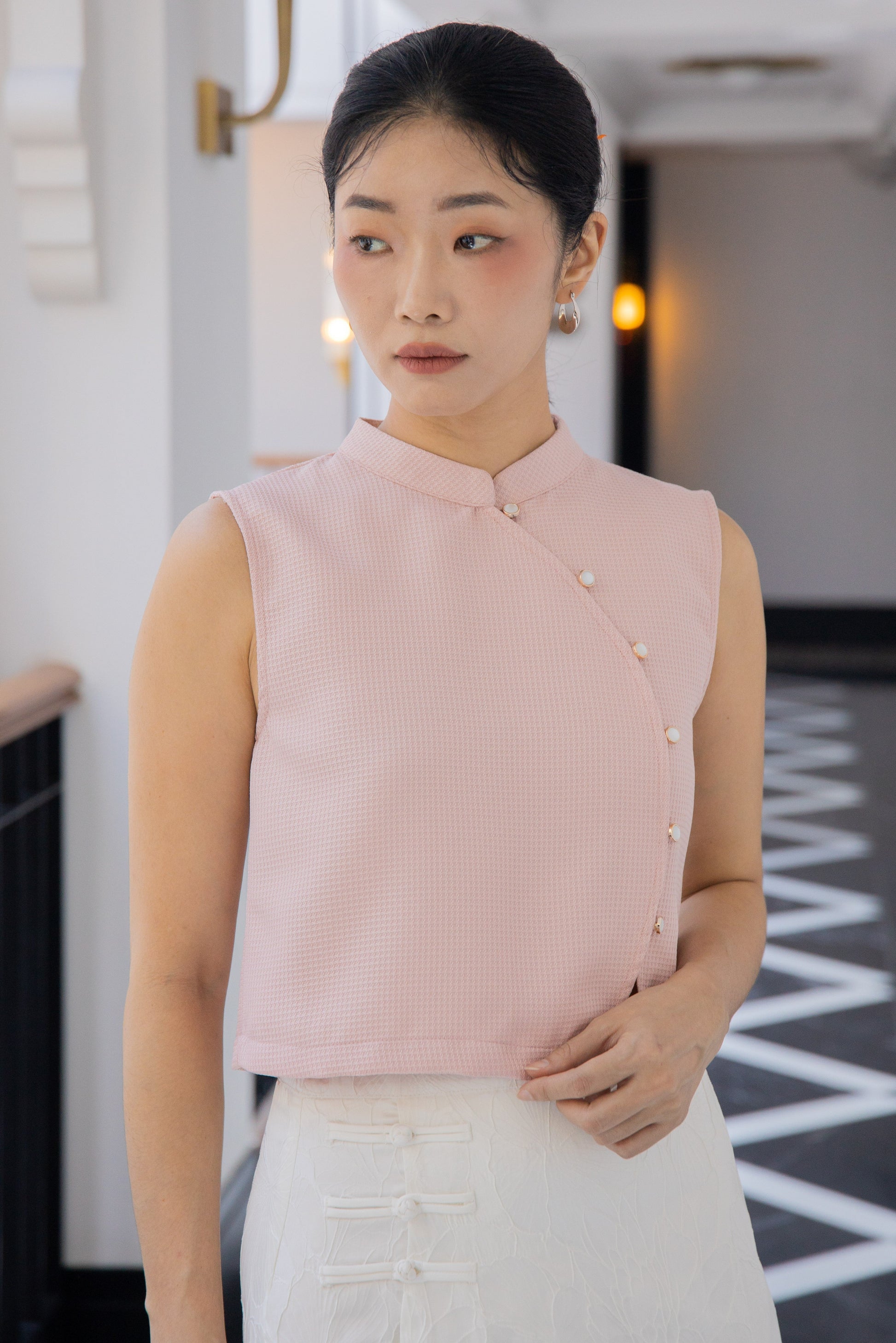 Elysse Mandarin Collar Side Buttons Cheongsam Top (Pink)