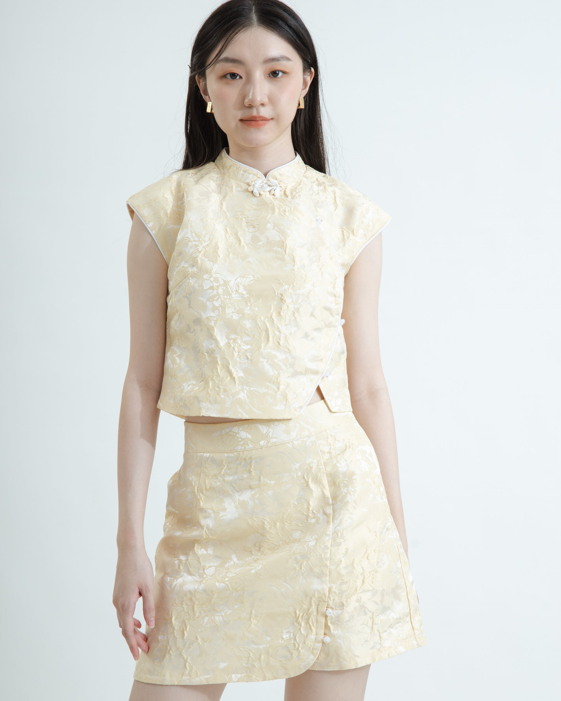 Spring Aura Embroidery Jade Button Cheongsam Top (Pastel Yellow)