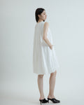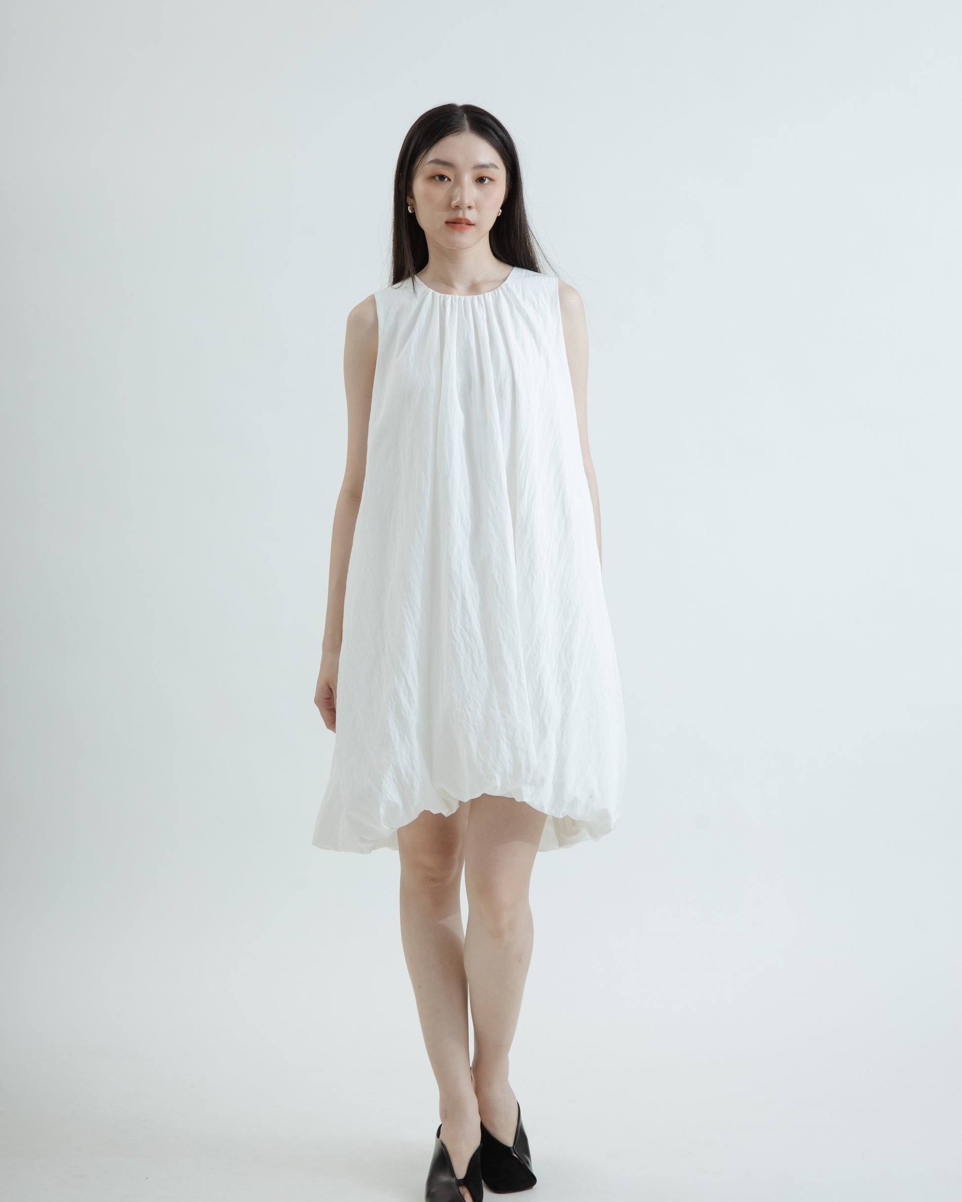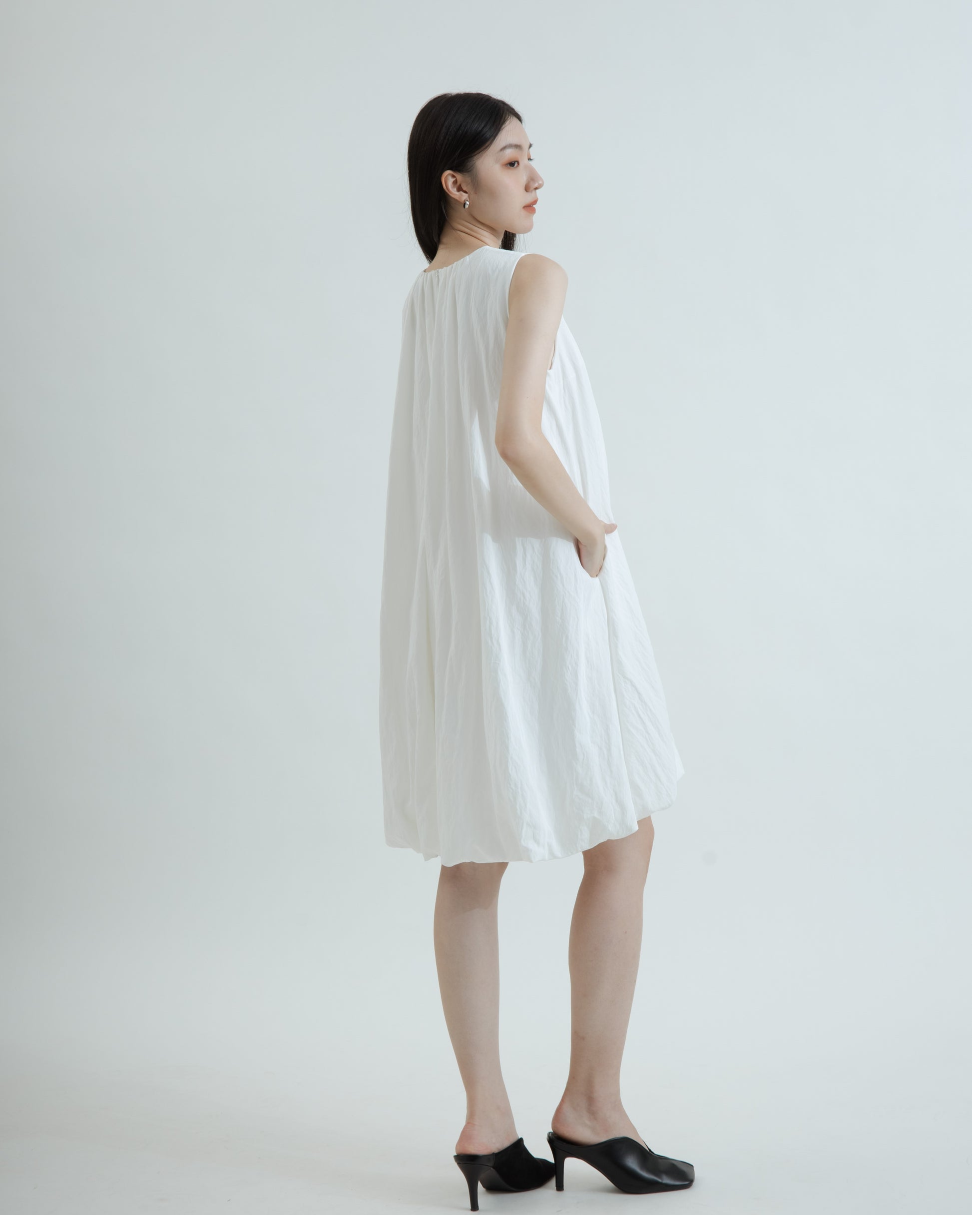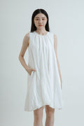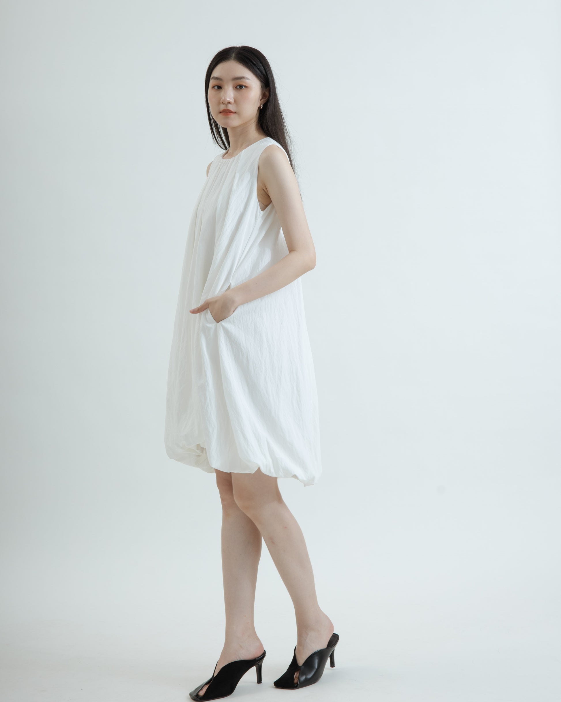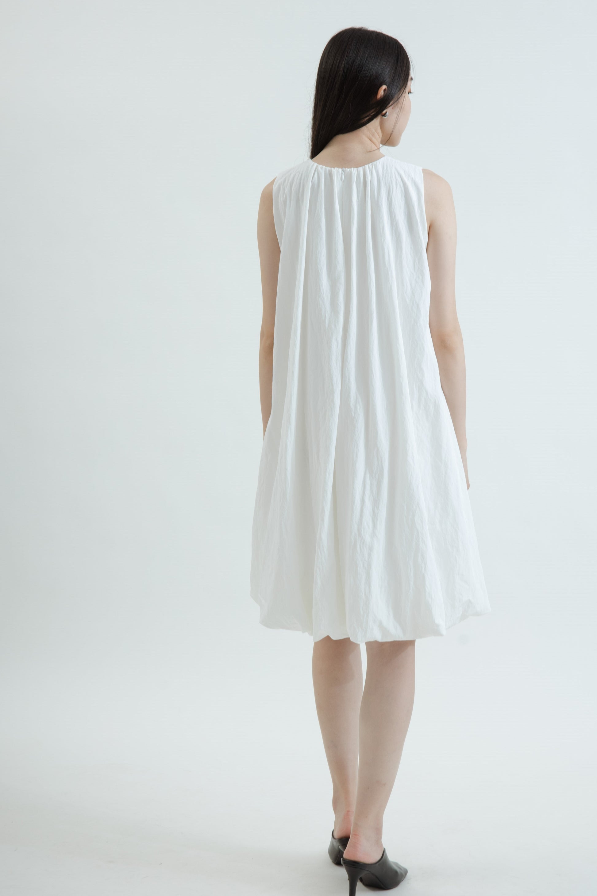 Flowy Pleated Asymmetrical Balloon Dress (White)