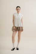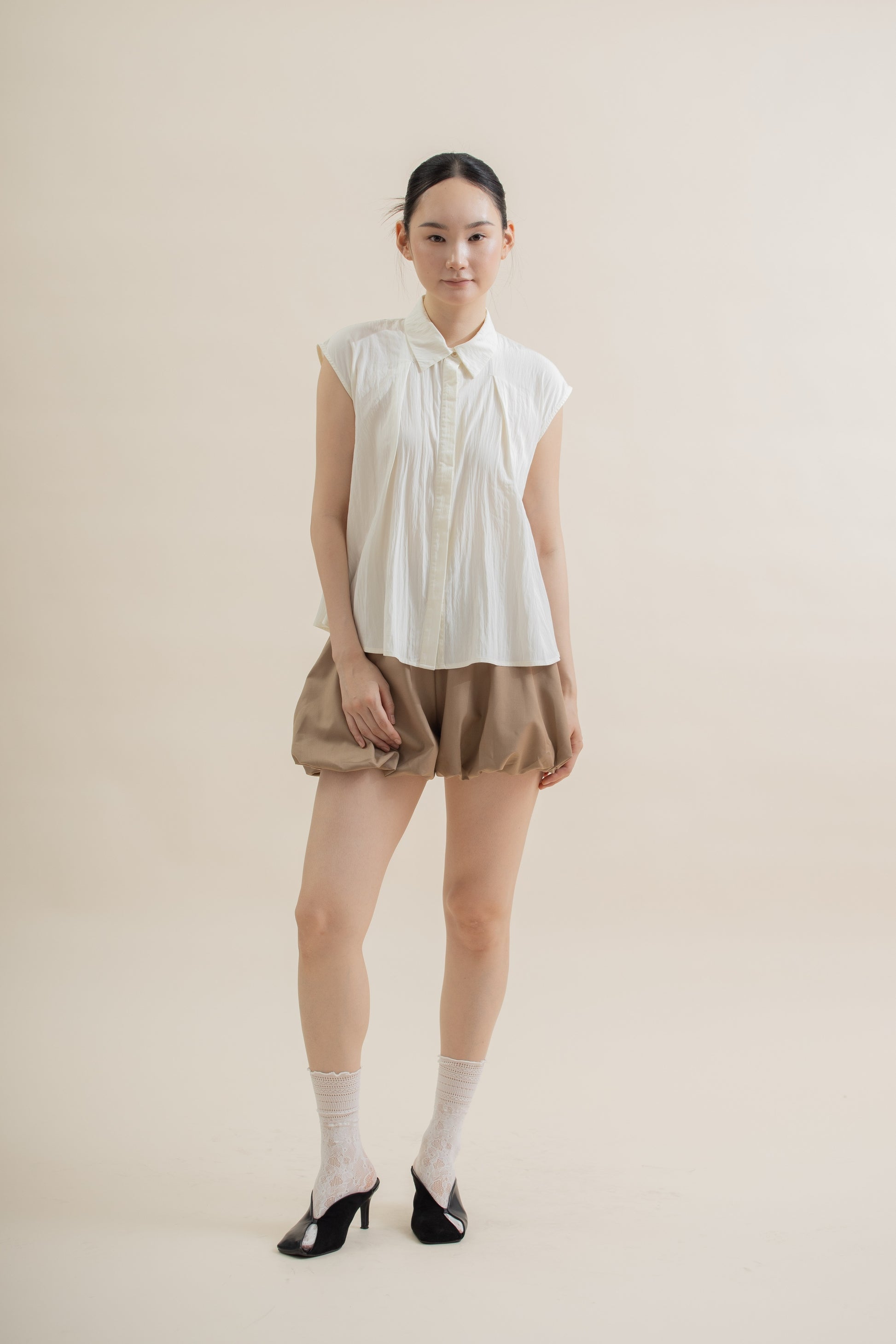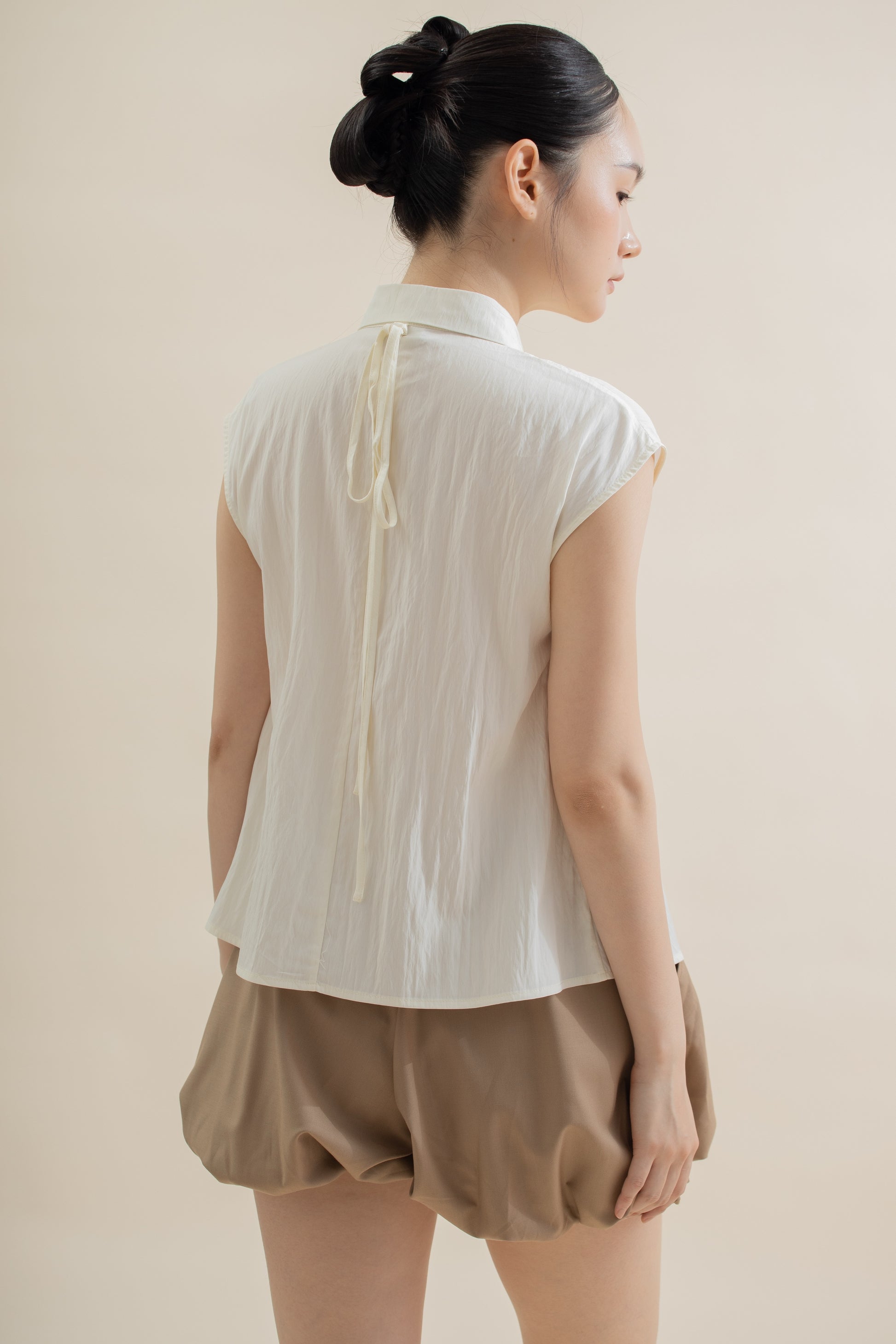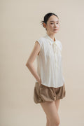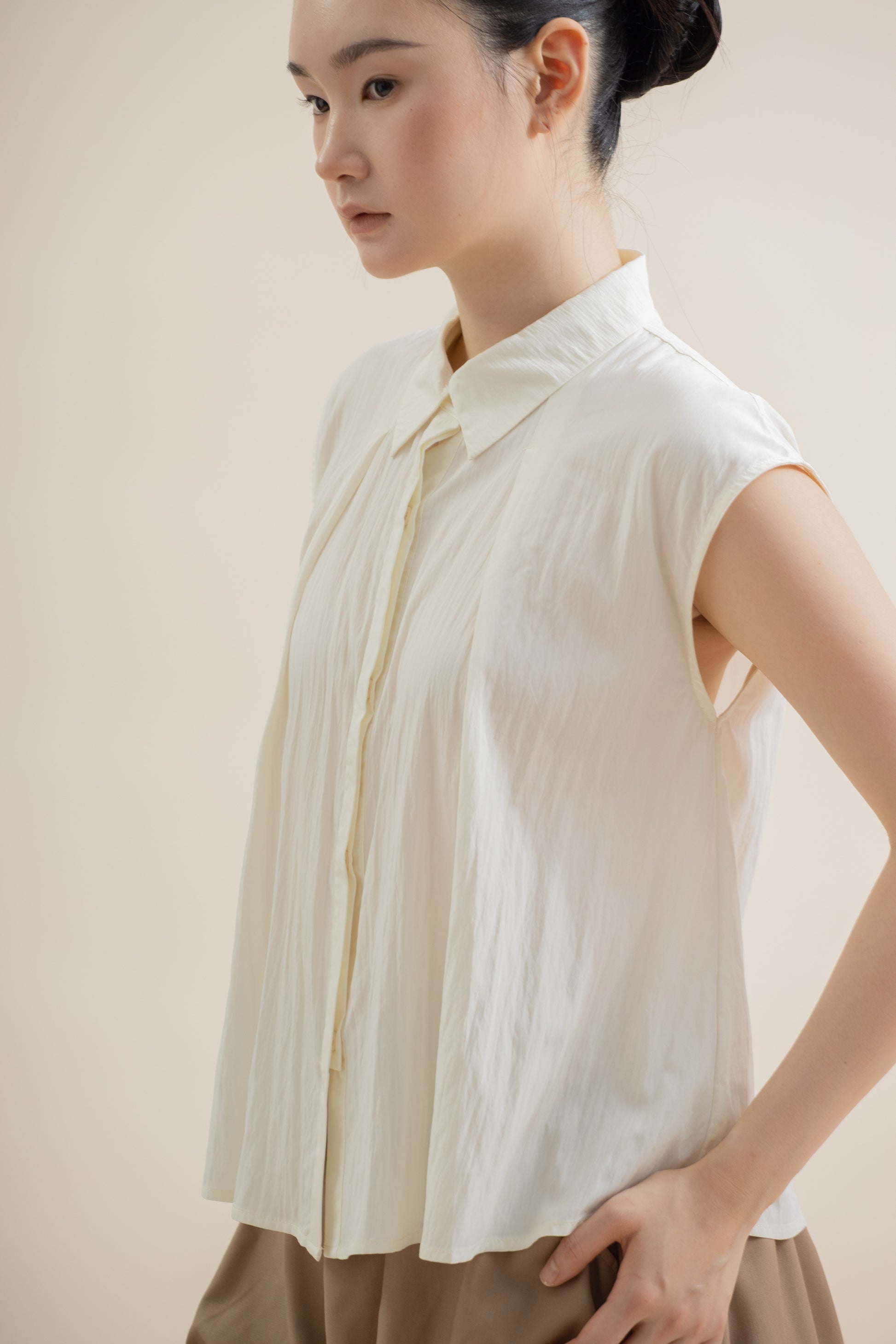 Front Pleated Collared Sleeveless Top (Beige)