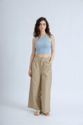 Designed for both comfort and sophistication, these tailored pants feature a flattering high-rise fit and subtle front pleats that add a refined touch. Crafted from a durable yet soft blend of 80% polyester and 20% viscose, they offer a smooth drape and excellent shape retention throughout the day.