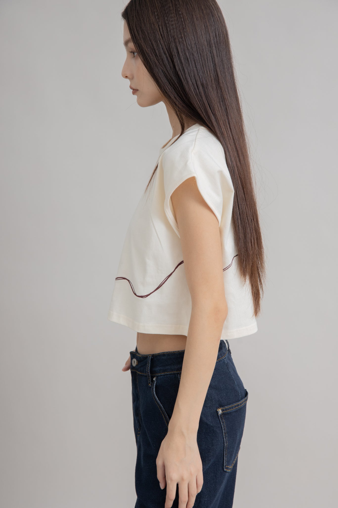 Keep it light with this beige crop tee, crafted from 100% cotton for a soft, breathable feel. Featuring delicate embroidered lettering that reads “If It’s Heavy, Let It Go”, it’s a gentle reminder wrapped in everyday style. Designed with a relaxed cropped cut, it pairs effortlessly with high-waist bottoms for a laid-back yet meaningful look.