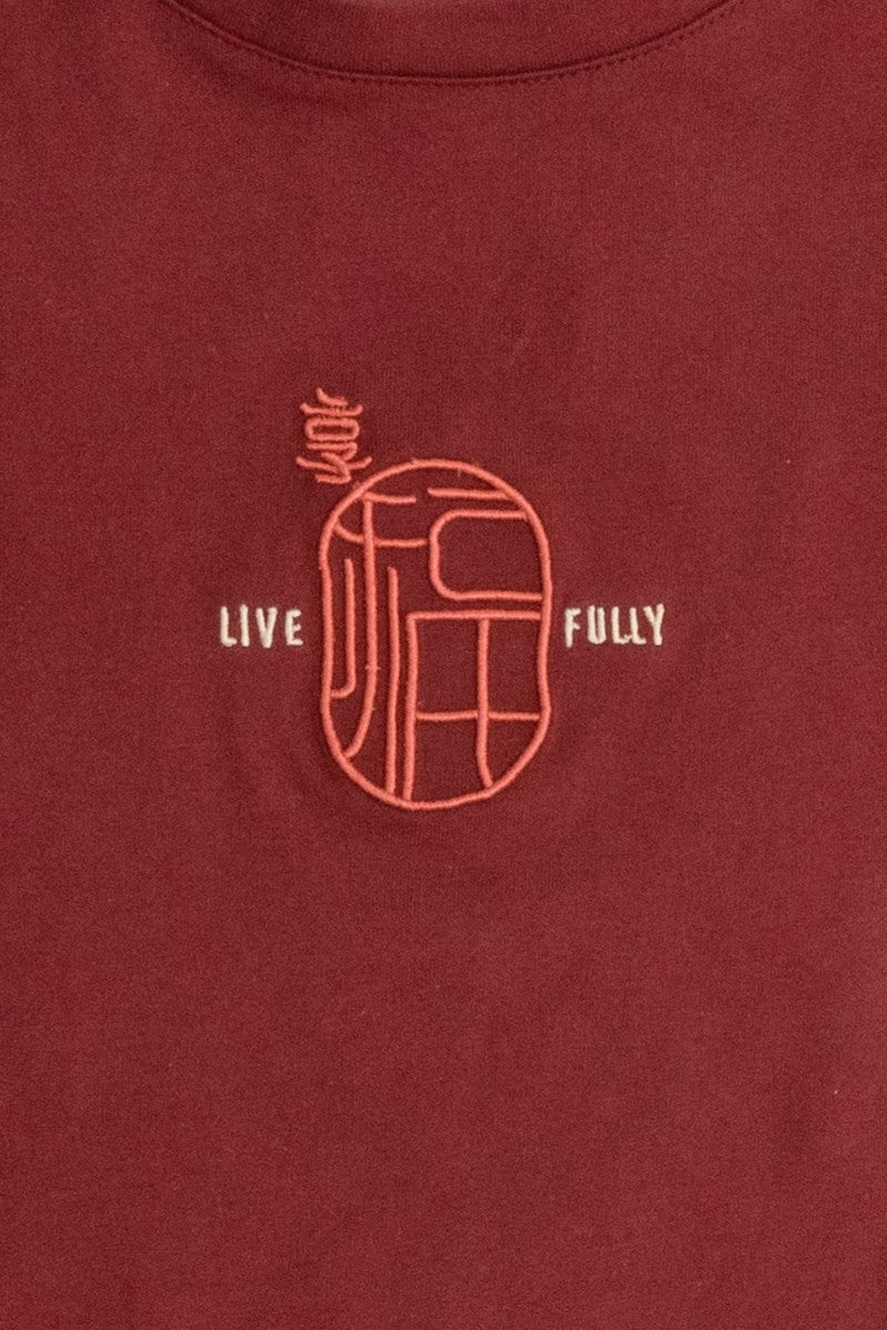 Designed for kids. A simple tee featuring a subtle embroidered “Fu” (福) graphic symbolising blessings and a life lived fully. Made from 100% cotton, it’s soft, breathable, and comfortable for everyday wear. A relaxed fit makes it easy to style for any casual look.