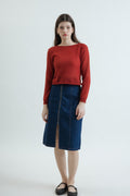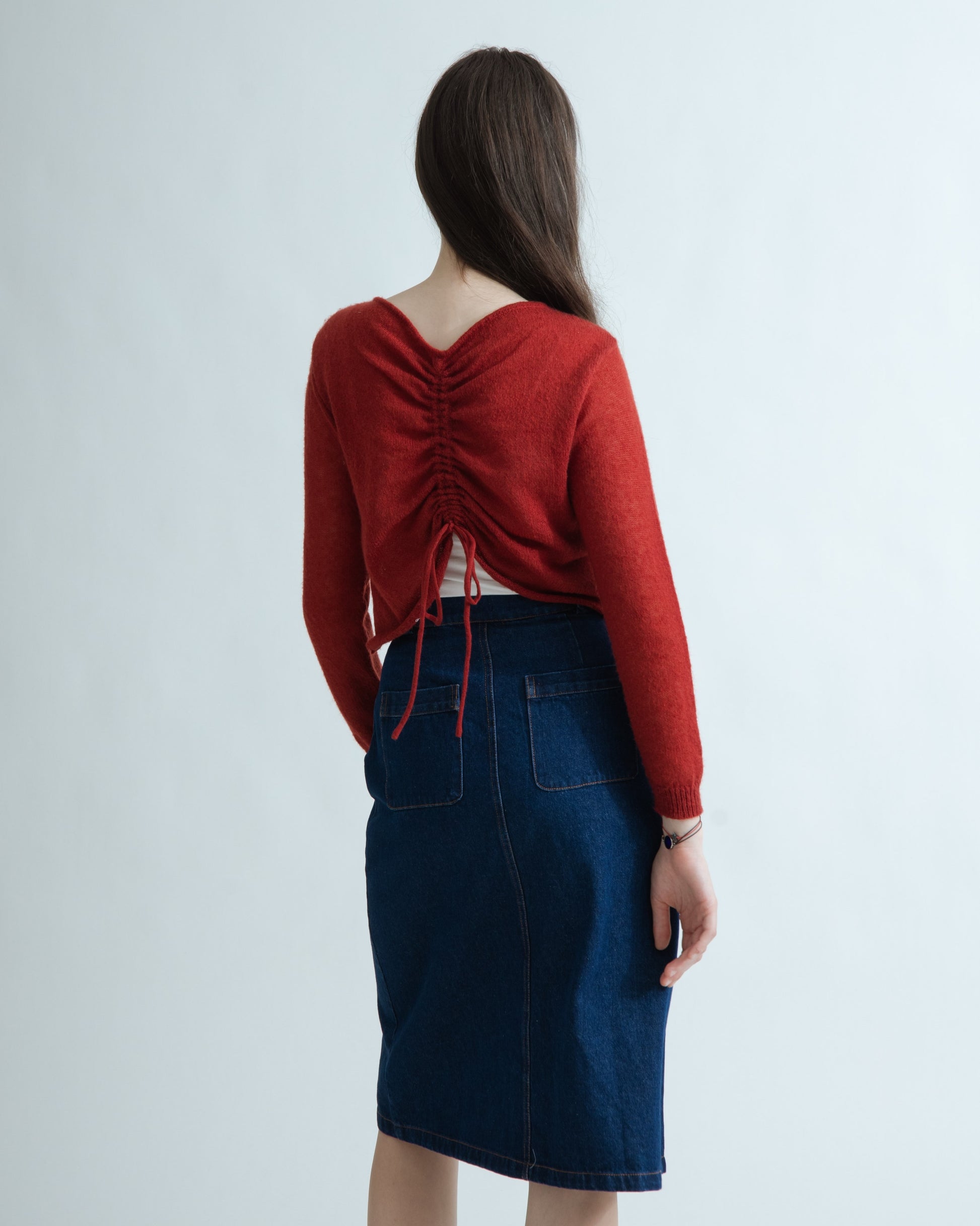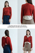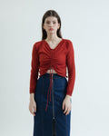 Layla Drawstring Long Sleeve Knit Top (Red)