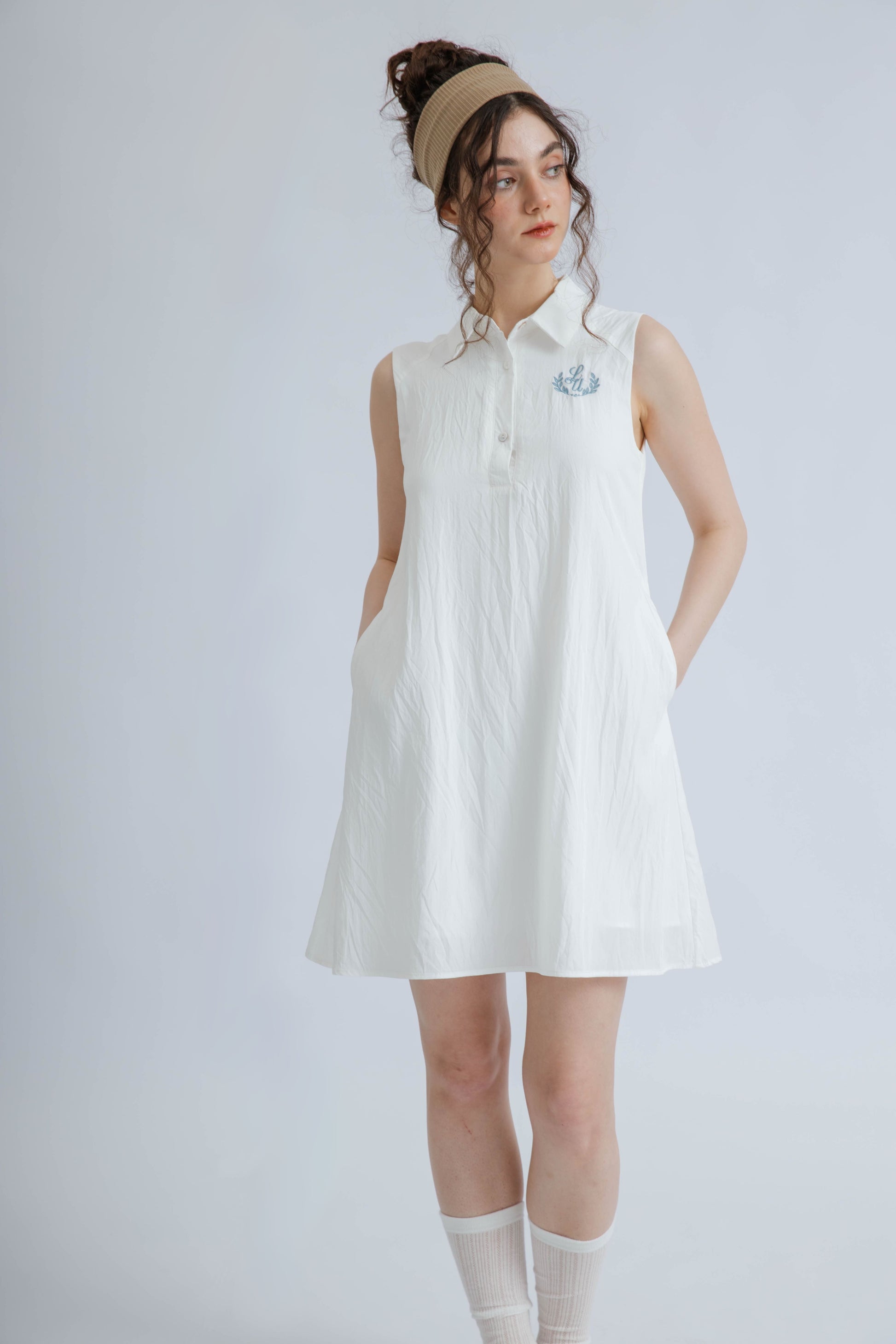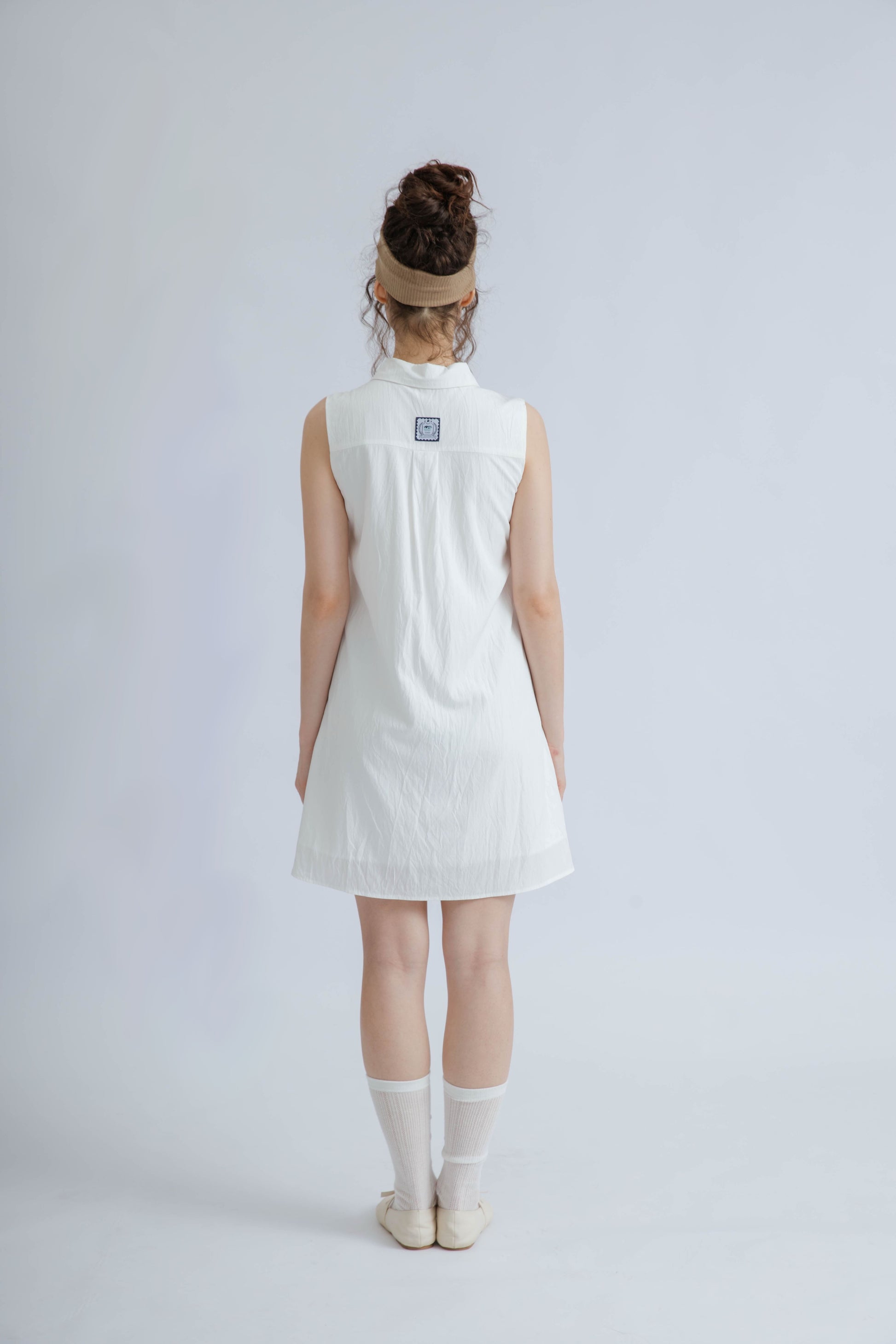 LULU Embroidery Button Sleeveless Dress (Ivory)