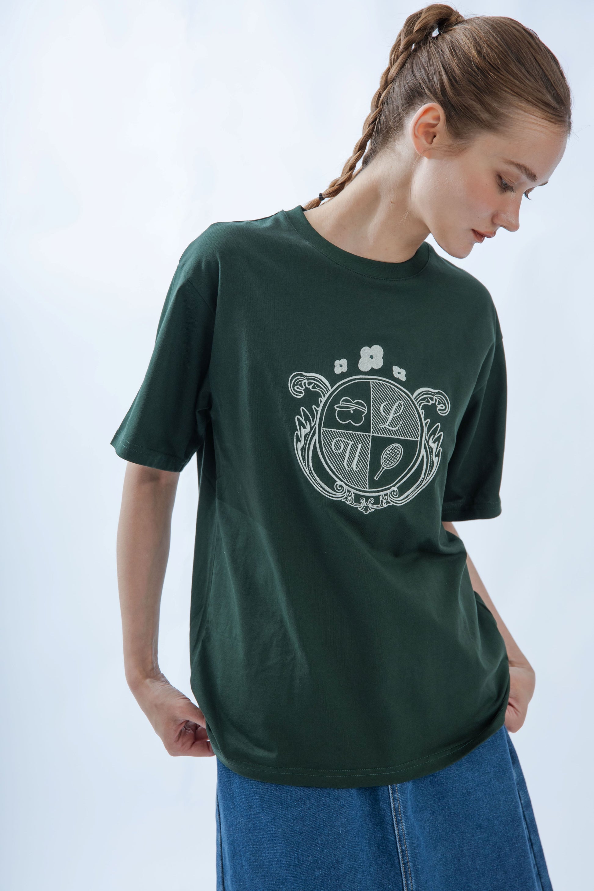 LULU Embroidery Emblem Oversize Tee (Green)