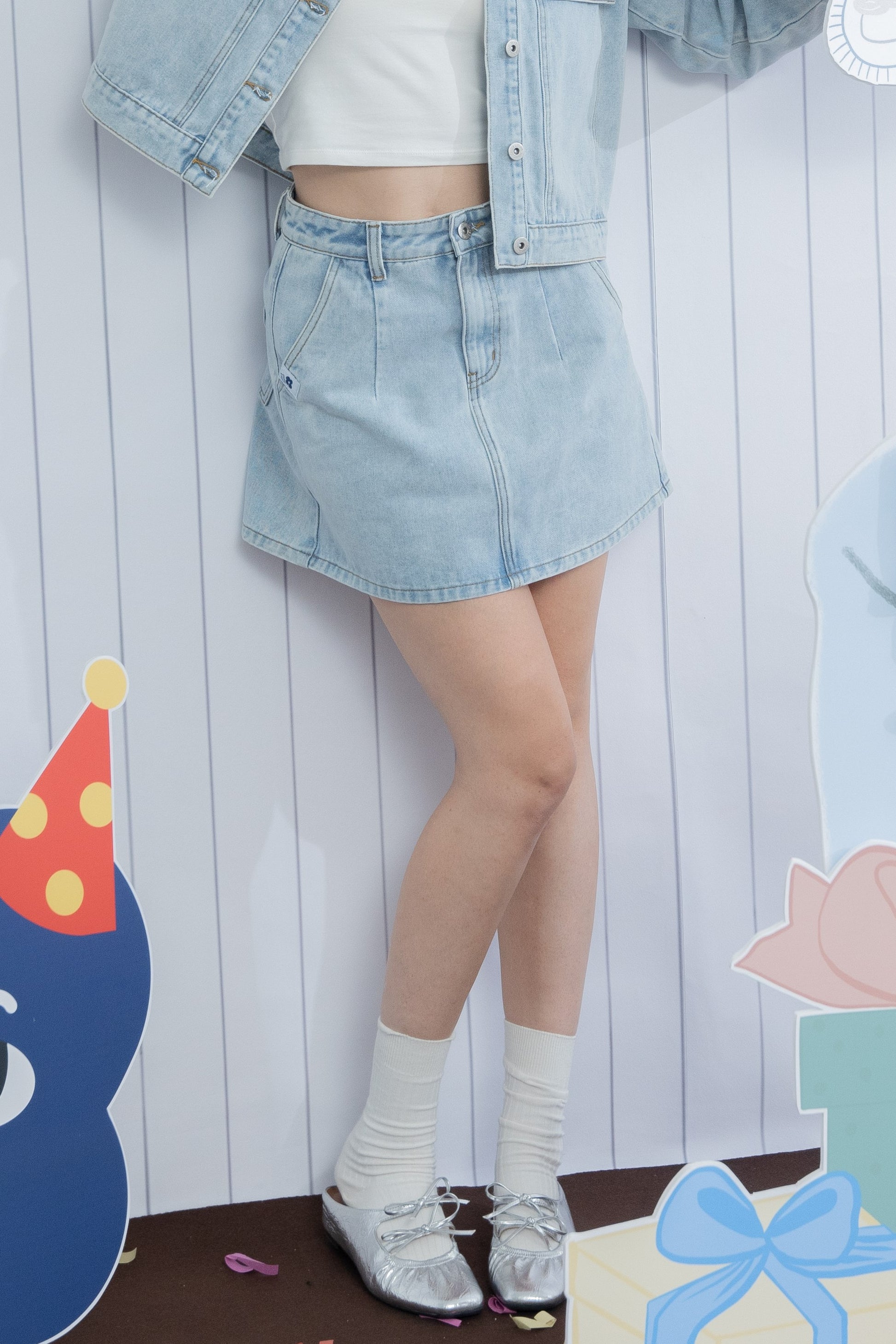 LULU Embroidery Pocket Denim Skirt (Washed Denim)