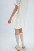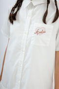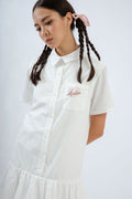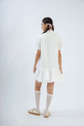 LULU Embroidery Puffy Hem Shirt Dress (Ivory)