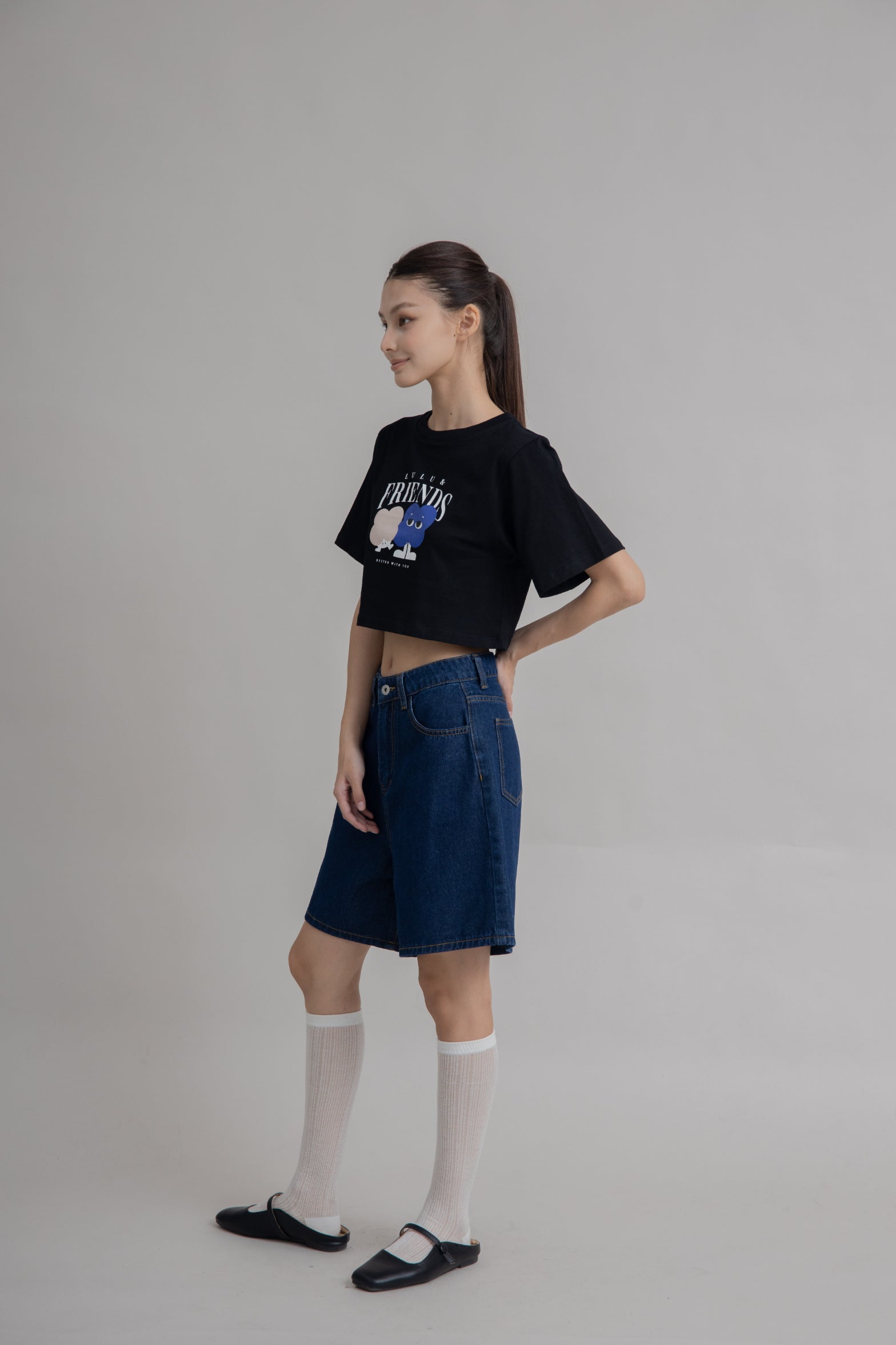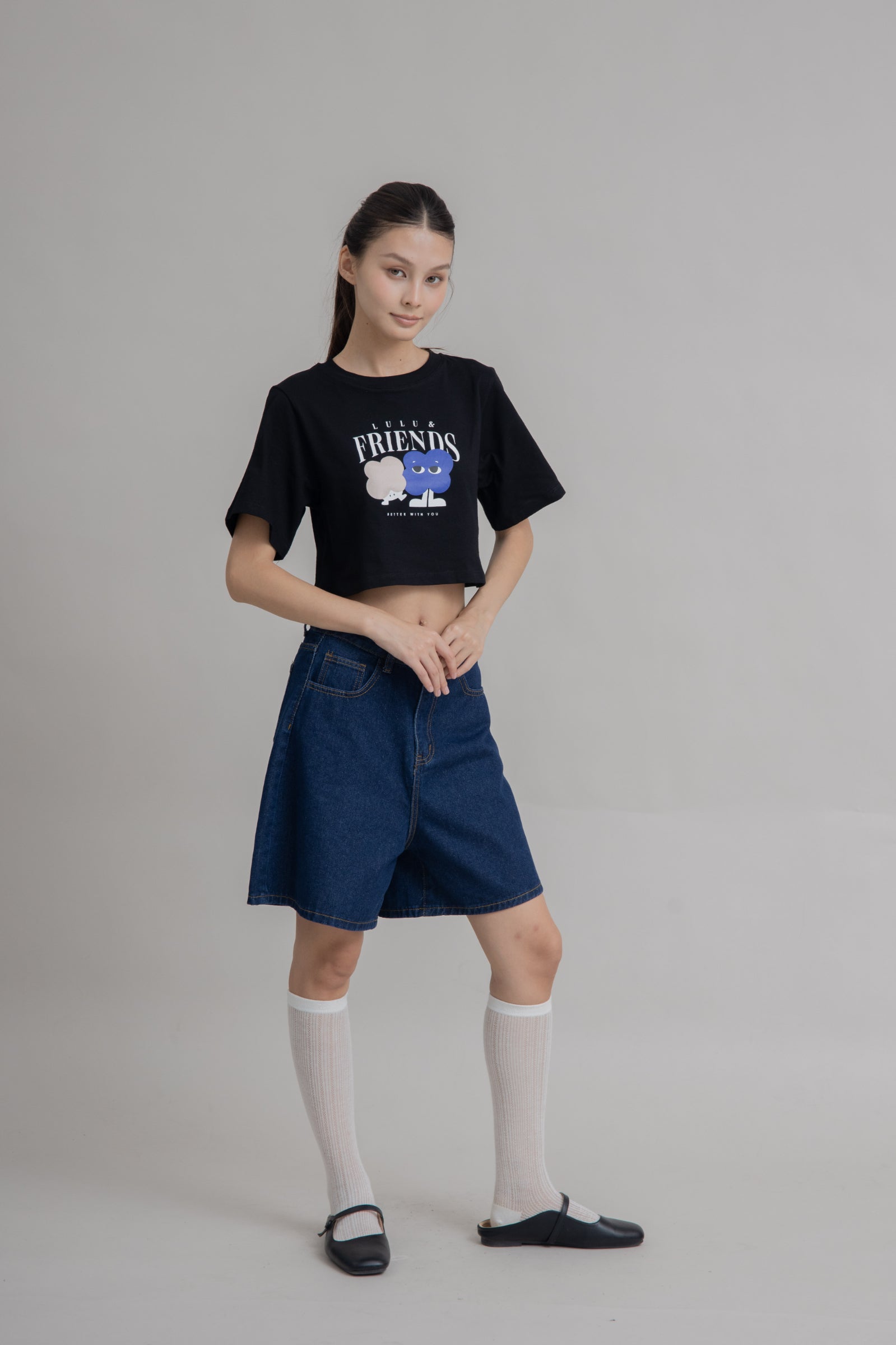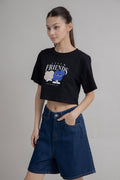 LULU & FRIENDS Crop Print Tee (Black)