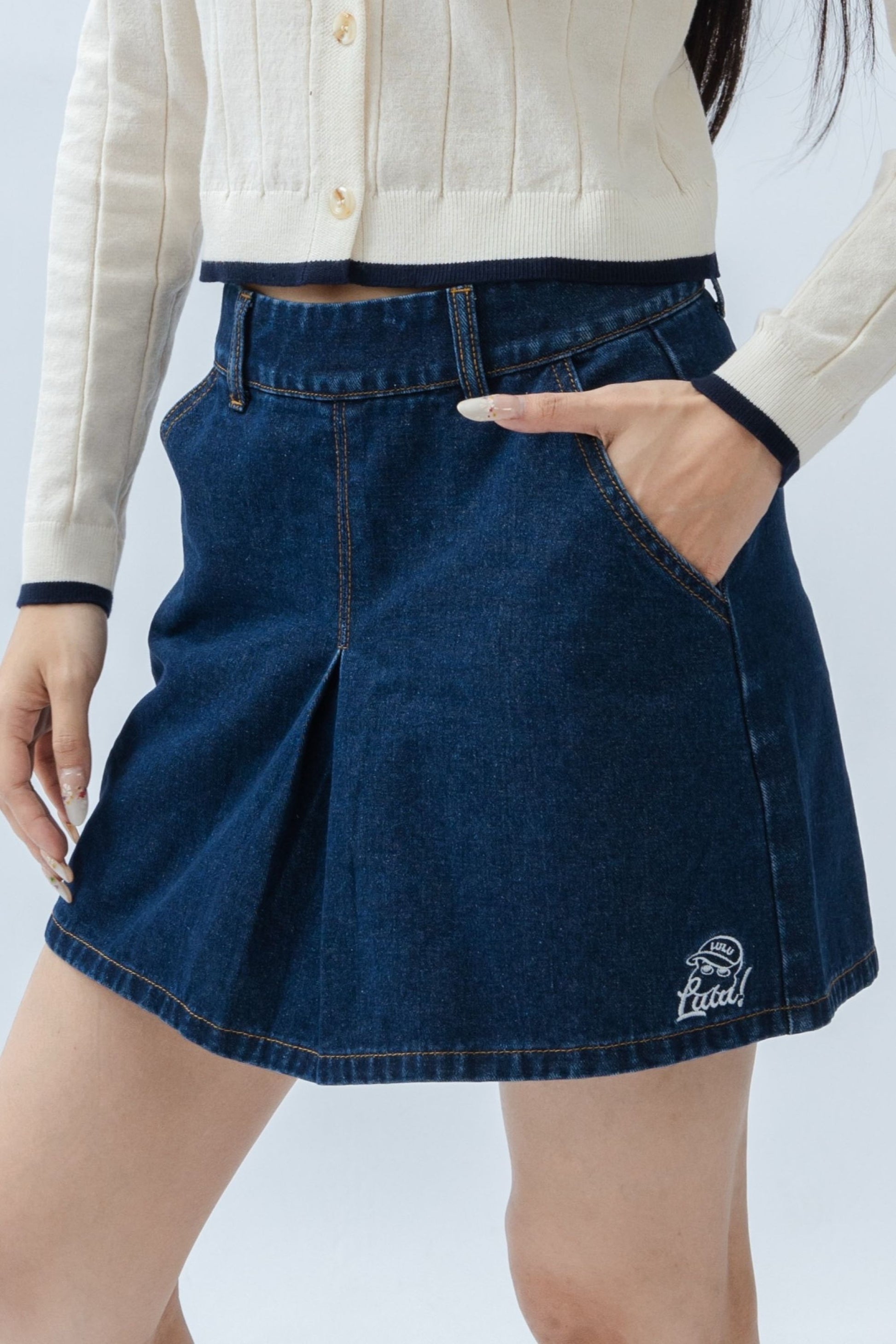 A playful twist on classic denim. This front-pleated short skirt adds a dose of charm to your everyday look with its cute, structured silhouette. The pleats bring a skirt-like bounce with a touch of vintage school-girl flair—perfect for pairing with tucked-in tees, cropped tops, or anything in between. Made from a soft yet durable blend of 73.3% cotton and polyester mix, it holds its shape while staying comfortable all day.