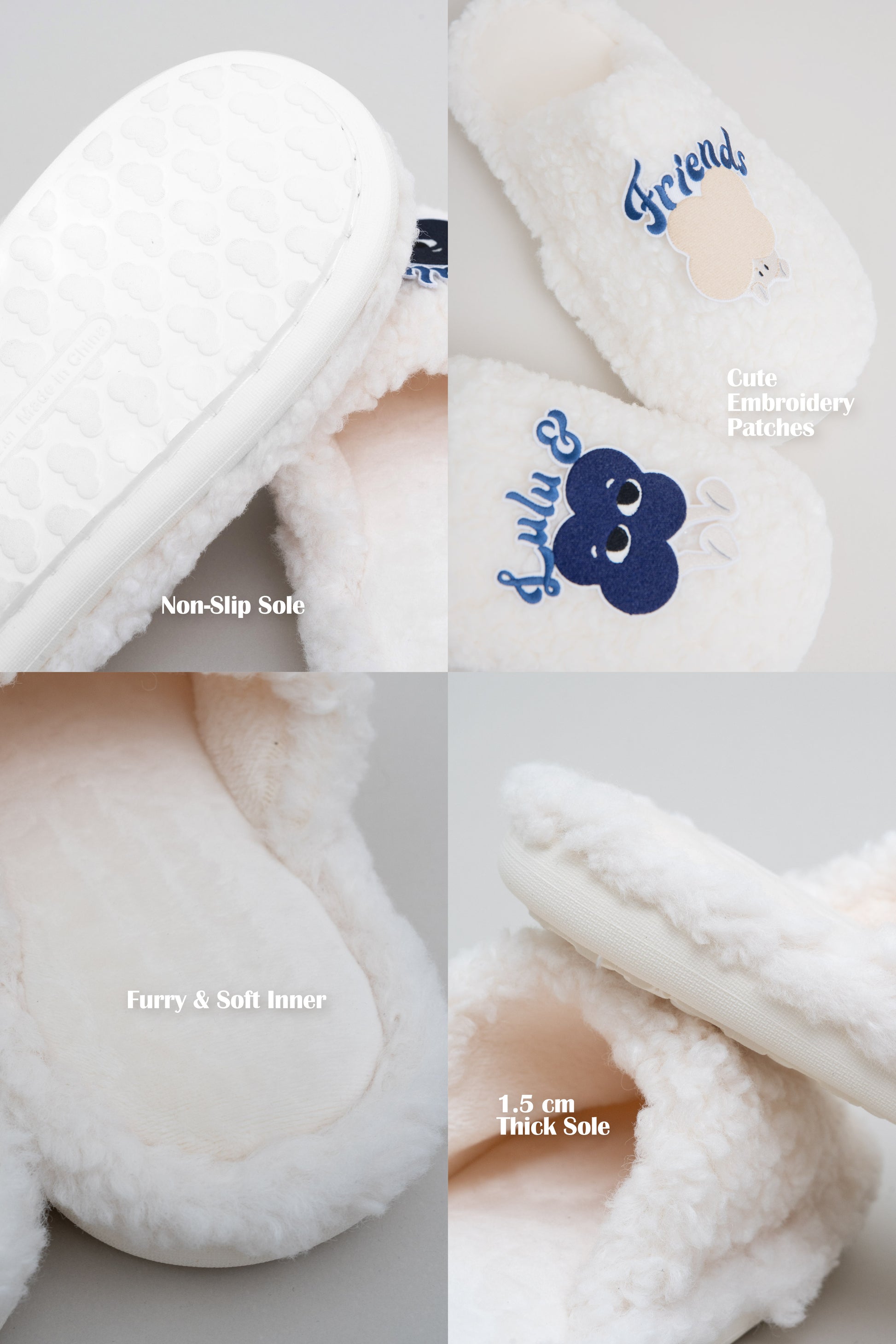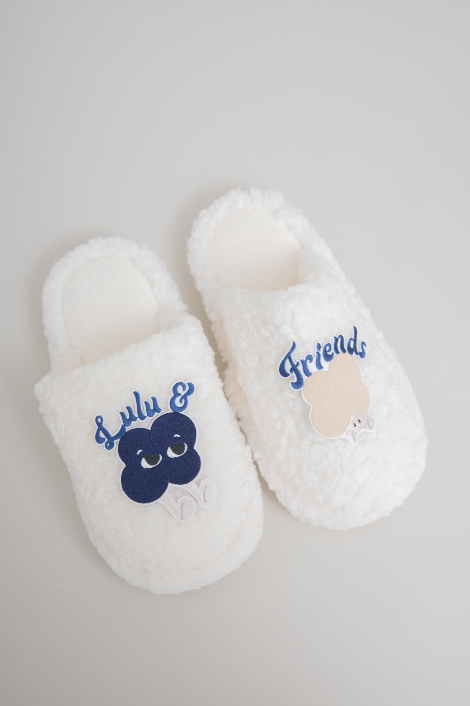 Step into comfort with these short furry indoor slides in a soft ivory hue, featuring adorable Lulu & Friends embroidery at the front. Made from 100% polyester, they’re plush, lightweight, and perfect for keeping your feet warm and cozy at home. Available in 3 size selections: 36–37, 38–39, and 40–41, these easy slip-ons bring a touch of fun and cuteness to your everyday lounging.