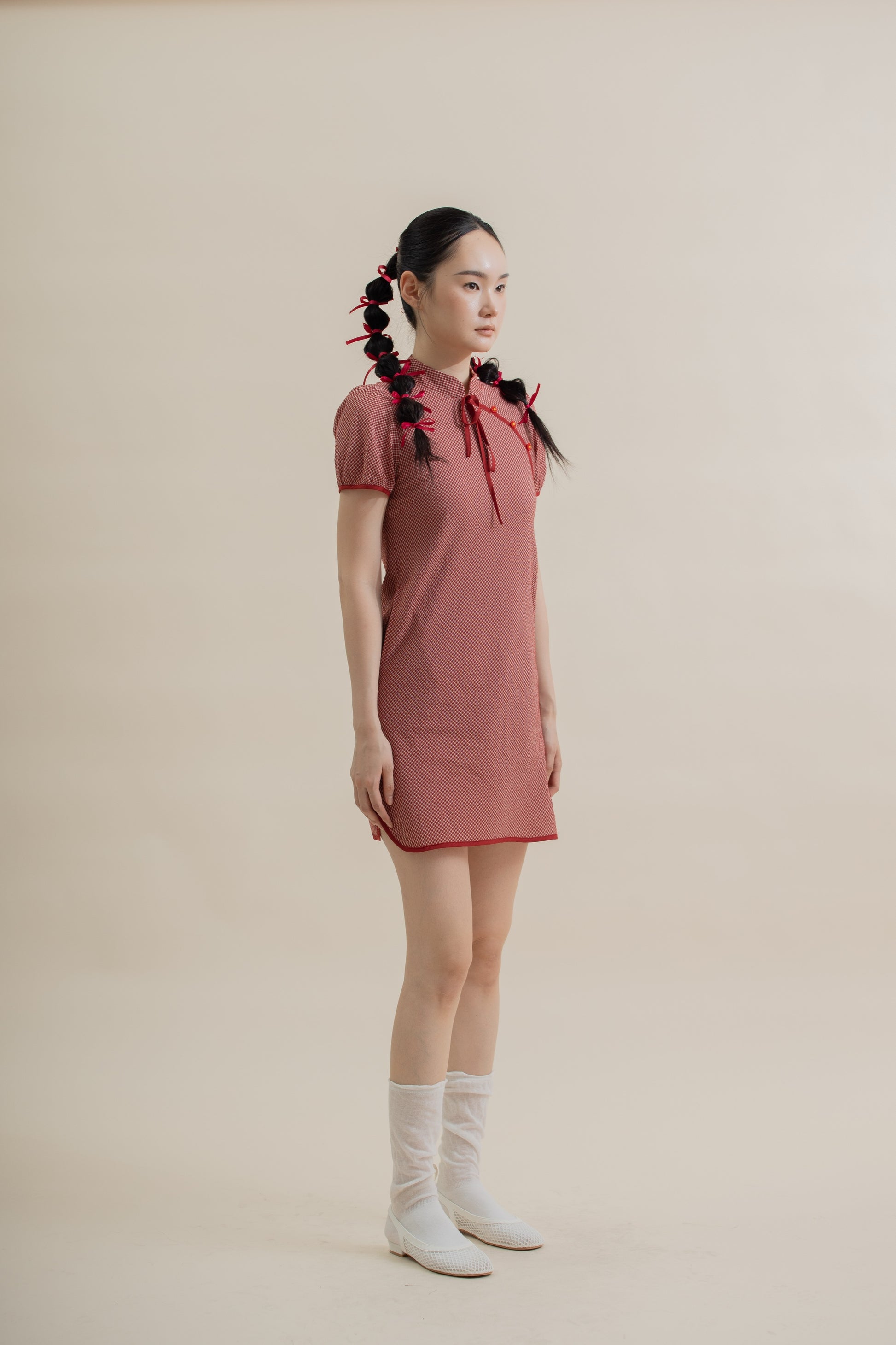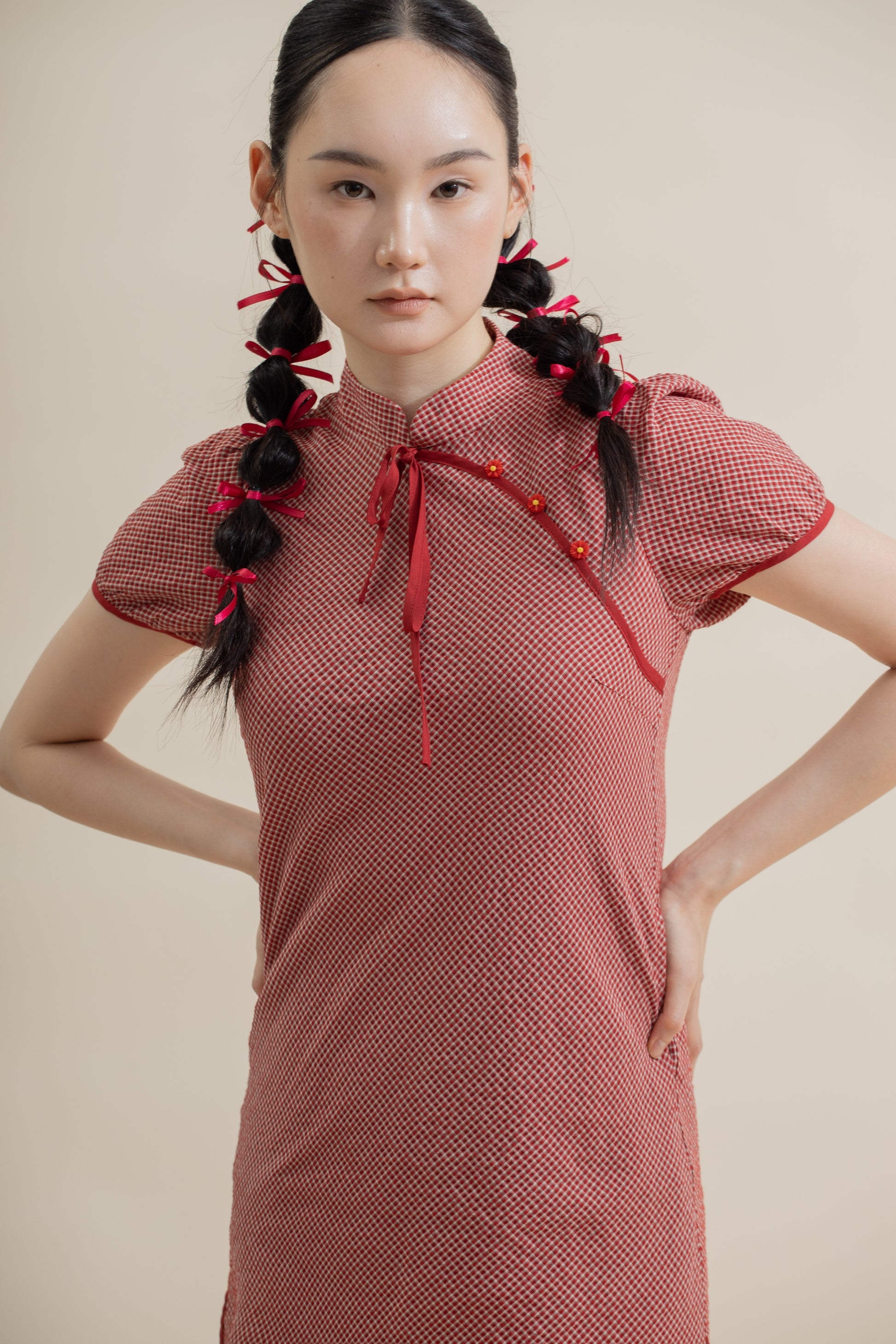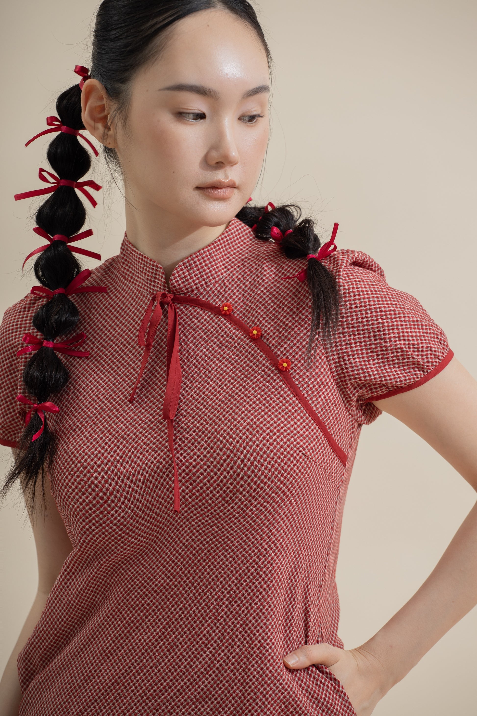LULU Plaid Cheongsam Dress (Red Plaid)