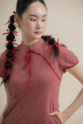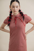 A playful twist on tradition — this cheongsam dress features a red plaid pattern and a delicate ribbon detail beneath the mandarin collar for a soft, feminine touch. Crafted from a breathable 65% Cotton,35% Polyester blend, it offers comfort, light structure, and timeless charm — perfect for festive days or casual outings with a hint of nostalgia.